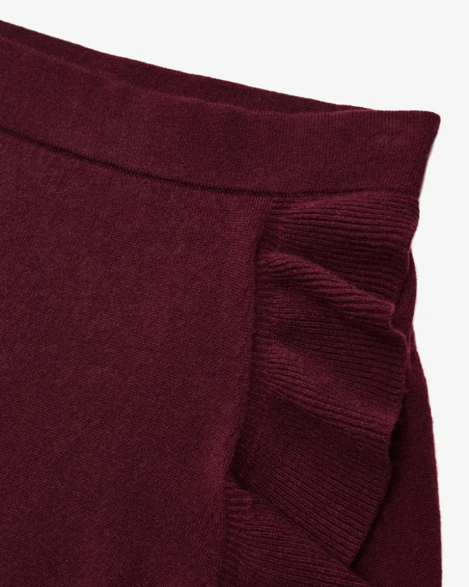 Strickrock für Damen von Allude in Bordeaux. Das Münchner Label wurde 1993 vonAndrea Karg gegründet und ist bekannt für luxuriöse Strickmode aus edlemCashmere. Auch dieses Modell überzeugt mit edlem Schurwoll-Cashmere-Mix infeiner Strick-Aufmachung, während die Rüschen-Details einen elegant,romantischen Look verleihen.