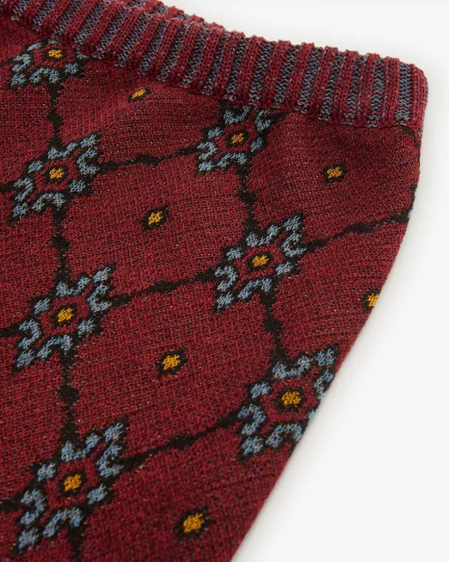 Strickrock für Damen von Etro in Dunkelrot, Blaugrau und Gelb. Dank desmodischen Allover-Dessins besticht das Modell in stilvoller Aufmachung, währendder elastische Bund Komfort verspricht.