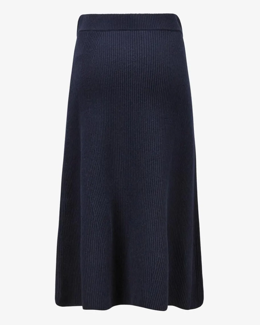 Strickrock für Damen von Moncler in Navy. Das Strick-Modell präsentiert sich mitausgestellter Passform und femininer Silhouette, während der weiche Schurwolle-Cashmere-Mix in Rippstrick-Verarbeitung für angenehmen Tragekomfort sorgt – Einvielseitiger Begleiter für modische Looks.
