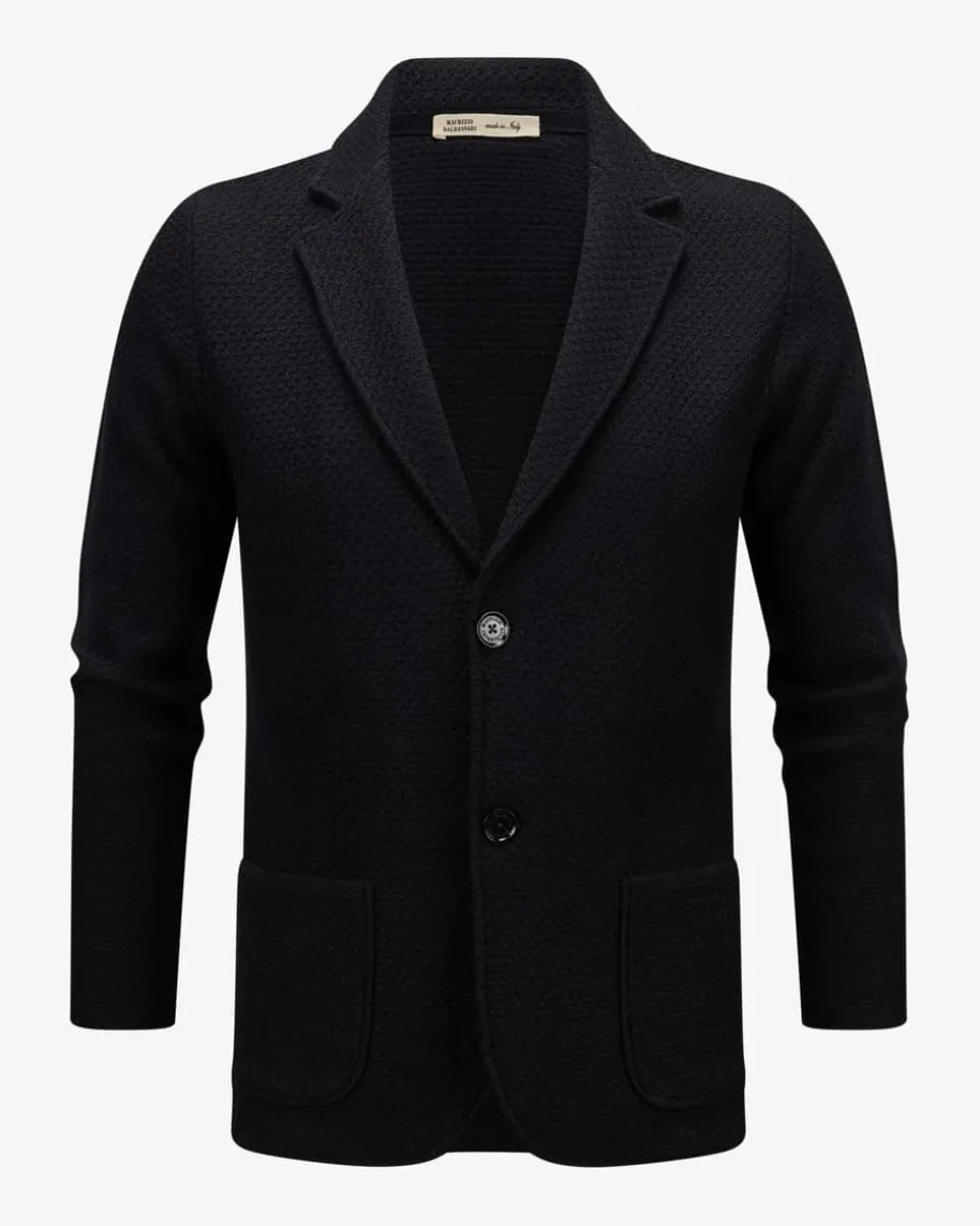 Stricksakko für Herren von Maurizio Baldassari in Navy. Dank derVerwendung von hochwertiger Schurwolle begeistert das Modell mit angenehmenTragemomenten, während die angesagte Passform in Verbindung mit klassischenDetails einen trendsicheren Strick-Favoriten kreiert.