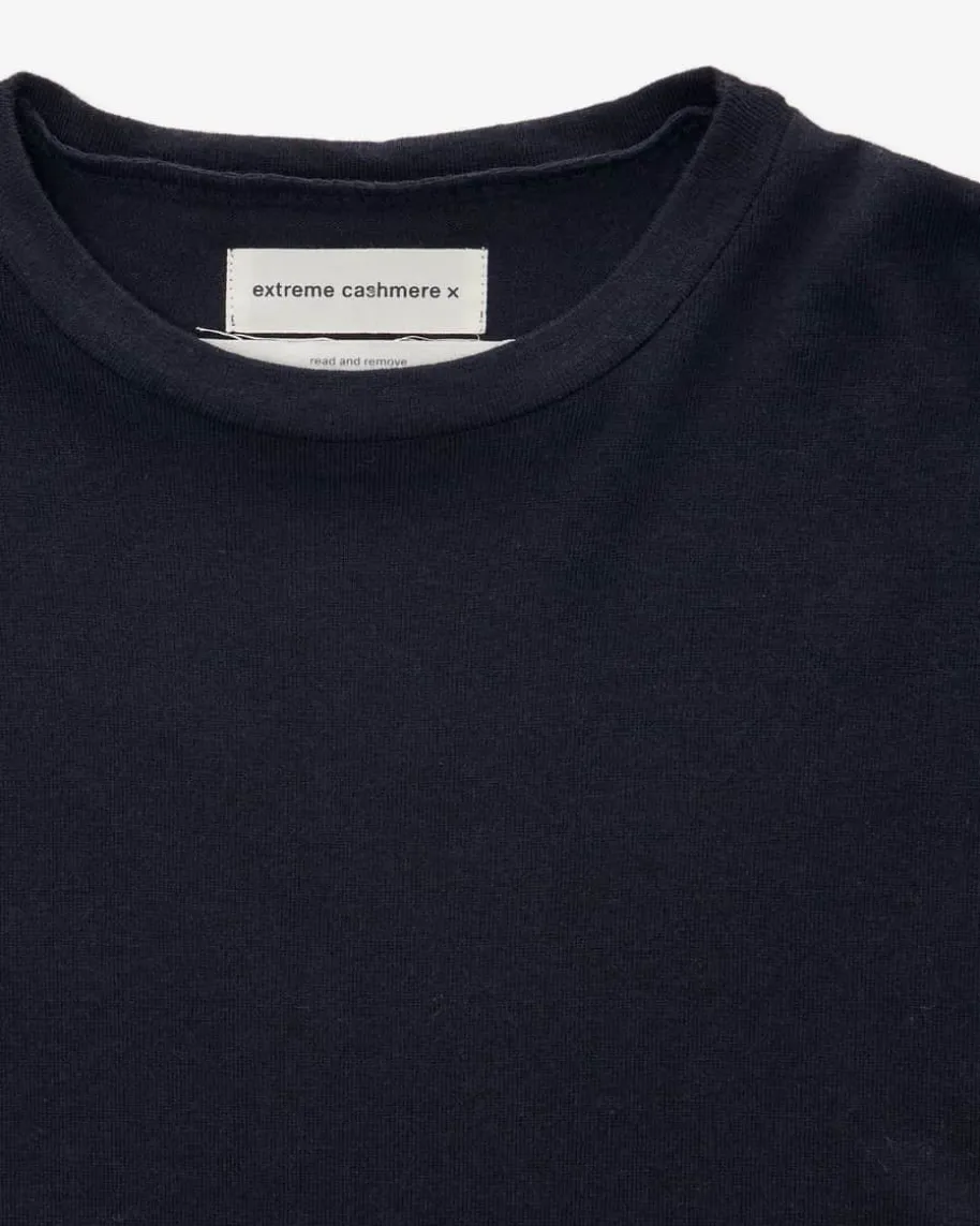 Strickshirt für Herren von Extreme Cashmere in Navy. Das Cashmere-Label ist füreine geschlechtsneutrale Mode mit Einheitsgrößen bekannt und eignet sich fürjeden Körper. Auch dieses Modell zeichnet sich dank des hochwertigen Baumwoll-Cashmere-Mix mit besonders angenehmen Tragemomenten aus – Ein zeitloserAllrounder für stilvolle Looks.
