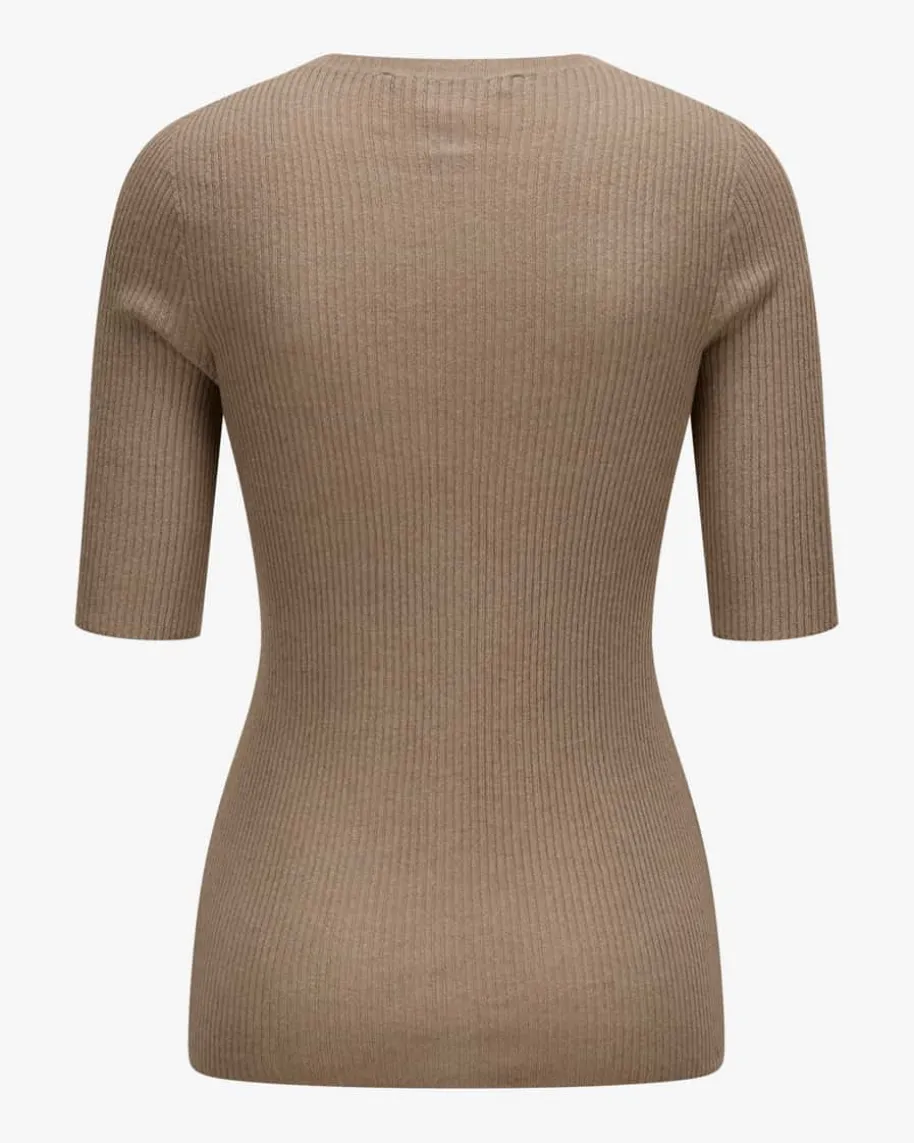 Strickshirt für Damen von Fabiana Filippi in Taupe. Während die schmale Passformmit verlängertem Schnitt sowie das elastische Rippstrick-Design einfigurbetontes Basic kreiert, schafft der hochwertige Merinowoll-Seiden-Mix mitCashmere-Anteil eine angenehm-leichte Haptik.
