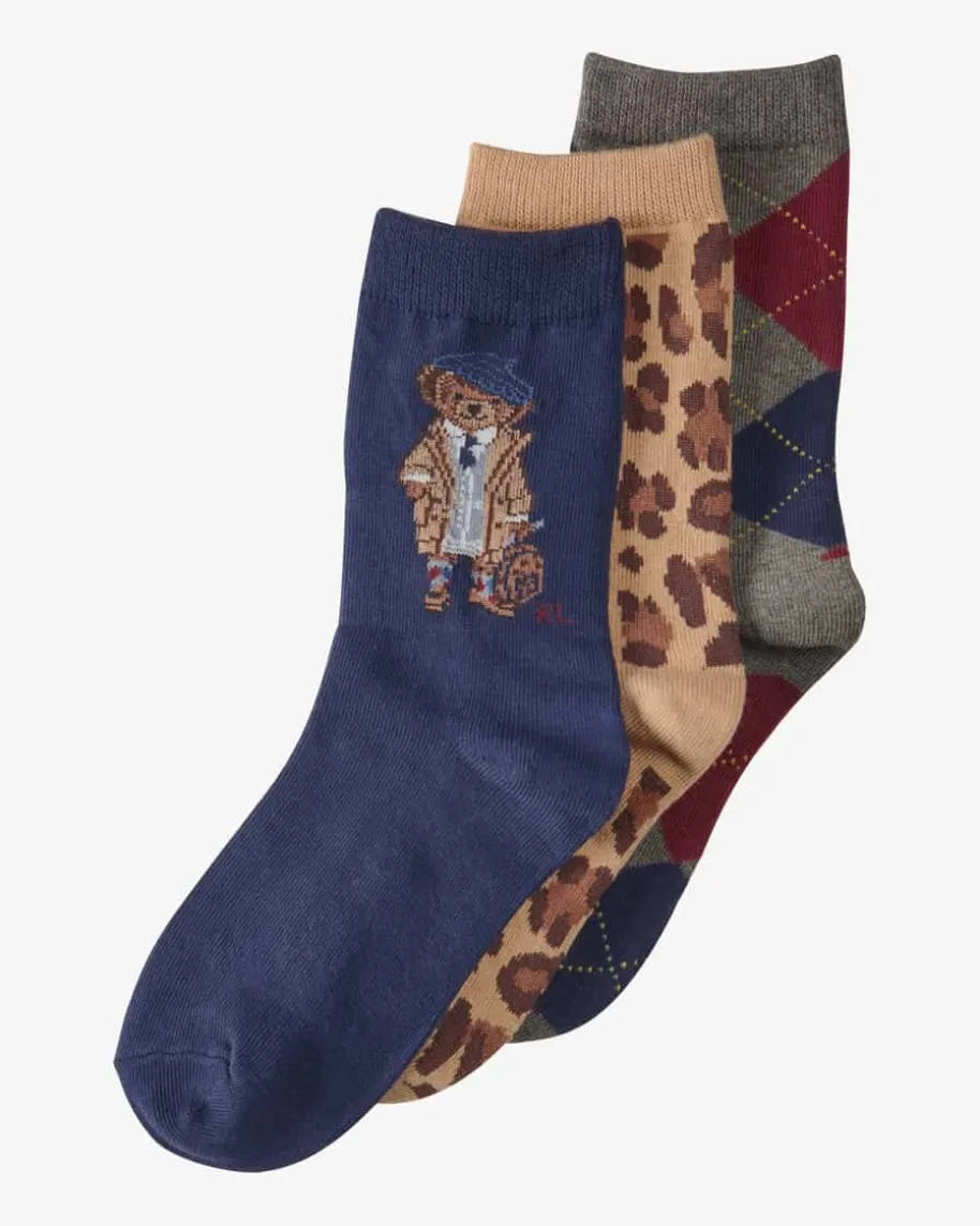 Strumpf-Set für Kinder von Polo Ralph Lauren in Navy, Beige und Grau. DieStrümpfe bestechen dank des elastischen Baumwoll-Mix mit einem angenehmenTragegefühl, während die süßen Designs niedliche Alltagsbegleiter für IhreKleinen schaffen.