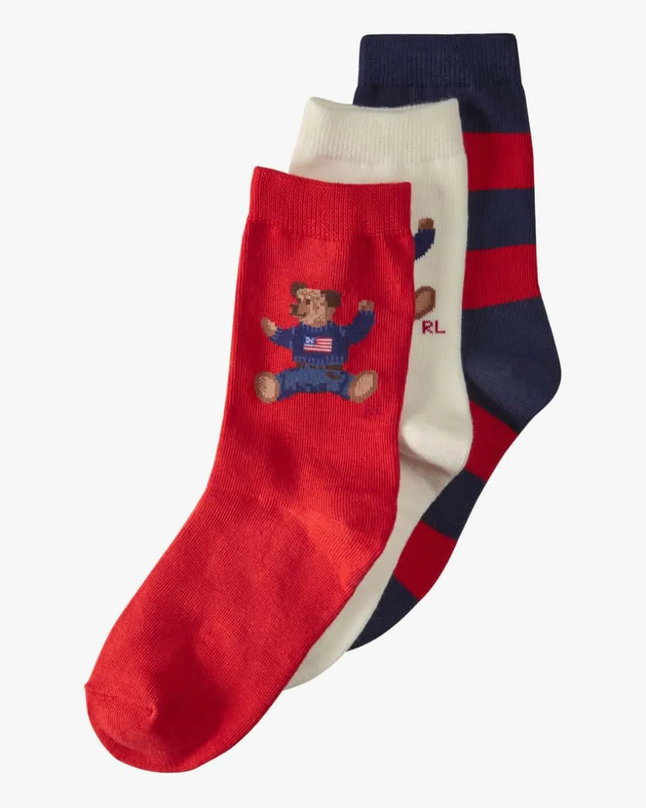 Strumpf-Set für Kinder von Polo Ralph Lauren in Rot, Navy und Creme. DieStrümpfebestechen dank des elastischen Baumwoll-Mix mit einem angenehmen Tragegefühl,während die klassischen Designs niedliche Alltagsbegleiter für Ihre Kleinenschaffen.