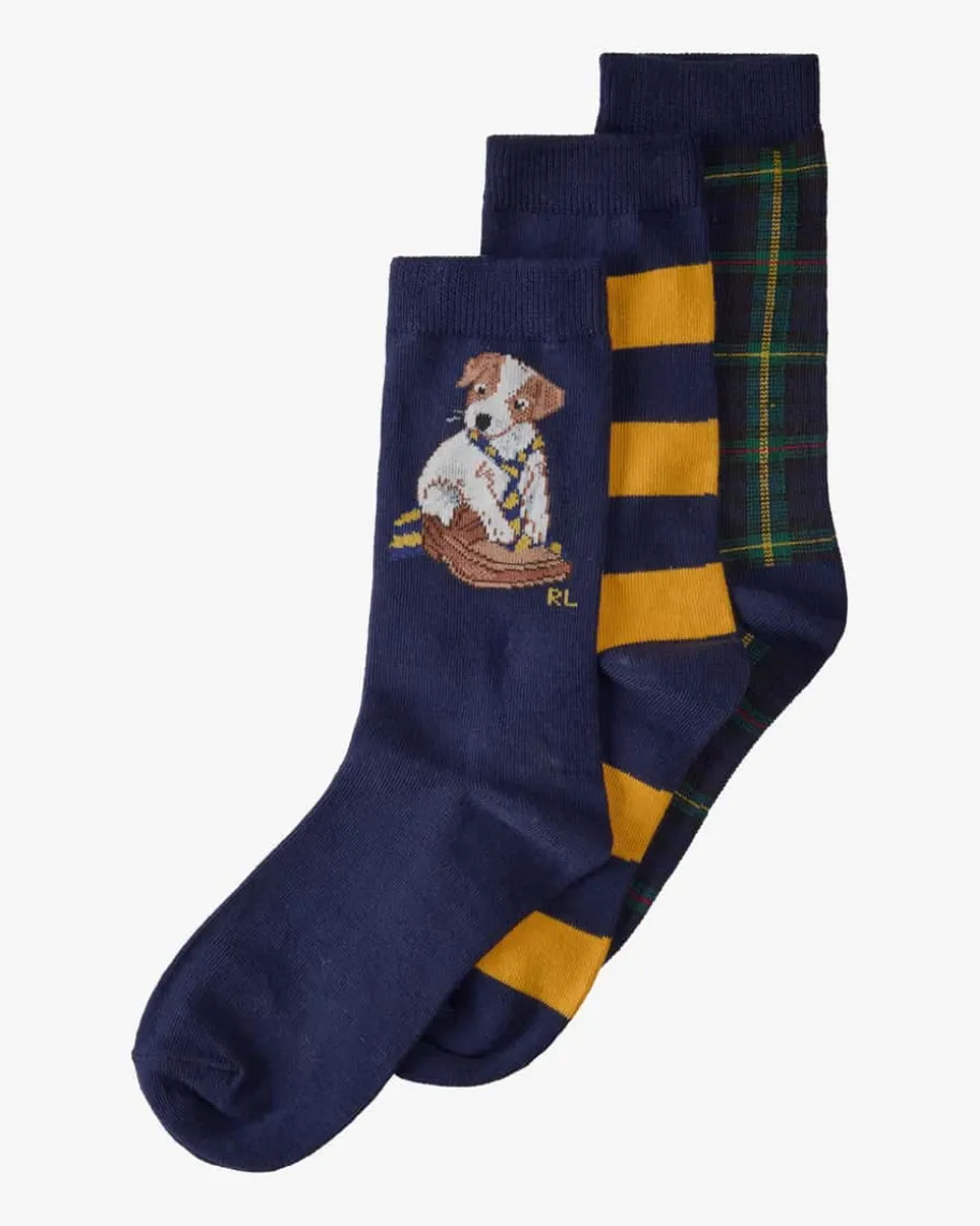 Strumpf-Set für Kinder von Polo Ralph Lauren in Navy, Gelb und Grün. DieStrümpfe bestechen dank des elastischen Baumwoll-Mix mit einem angenehmenTragegefühl, während die süßen Designs niedliche Alltagsbegleiter für IhreKleinen schaffen.