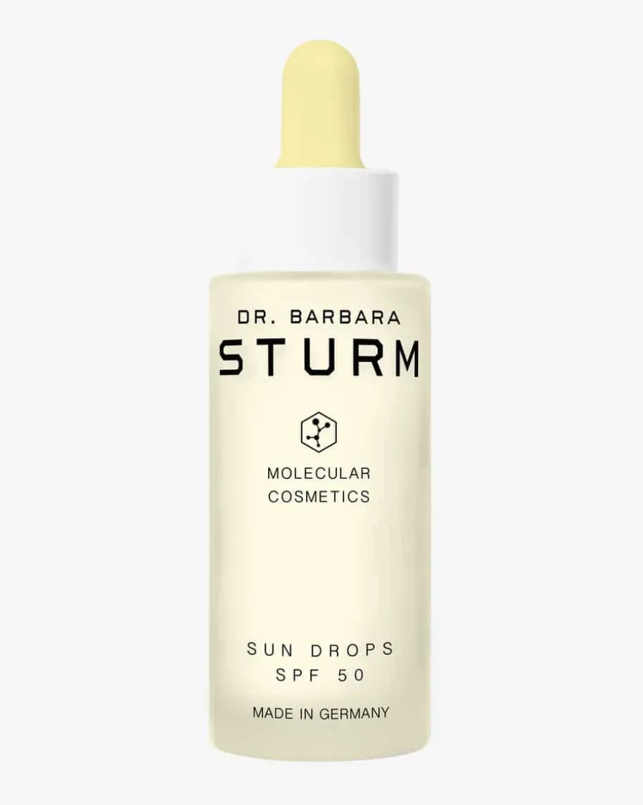 Sun Drops SPF 50 30ml von Dr. Barbara Sturm. DiesesSonnenserum in leichterKonsistenz für das Gesicht bietet mit einer ausgewogenenKombination aus UVA-und UVB-Filtern einen intensiven Lichtschutz SPF 50. EinWirkstoffkomplex ausCassia-Extrakt, Vitamin E und Beta-Glucan schützt vorvorzeitiger lichtbedingterHautalterung und unterstützt die Regeneration geschädigterZellstrukturen. DasSerum kann tröpfchenweise der Tagespflege zugemischt odernach deren Einziehenunverdünnt aufgetragen werden und garantiert dann einenLichtschutz Faktor 50.Zudem wirken die Sun Drops hautberuhigend und intensivpflegend.
