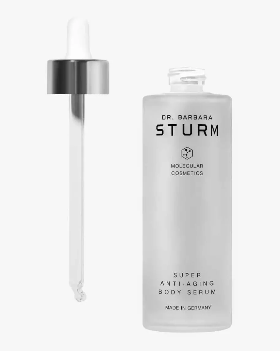 Super Anti-Aging Body Serum 100 ml für Damen von Dr. Barbara Sturm. EinWirkstoff-Komplex aus Limabohne, Peptiden und Bioflavonoiden wirkt demElastinabbau entgegen und mindert Dehnungsstreifen. Hyaluronsäure undBraunalgen-Extrakt spenden jede Menge Feuchtigkeit und verbessern dieHautelastizität. Das Antioxidans Purslane beugt zudem der frühzeitigenHautalterung entgegen, während Biosaccharide zusätzlich Geschmeidigkeitverleihen und die Haut strahlen lassen.