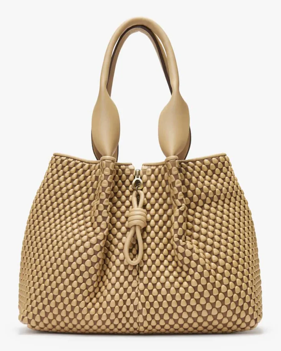 Surprise Schultertasche für Damen von Tissa Fontaneda in Camel. Das 2010gegründete Label vereint Handwerkliches Können und Liebe zum Detail. Die soforterkennbare „Bubble Bag“ ist zum Markenzeichen der Kollektion Tissa Fontanedageworden. Auch dieses Modell begeistert in charakteristischer Aufmachung mitstrukturierter Optik und extravaganter Form, während die hochwertige Leder-Qualität sowie die raffinierten Reißverschlüsse den letzten Schliff verleihen.