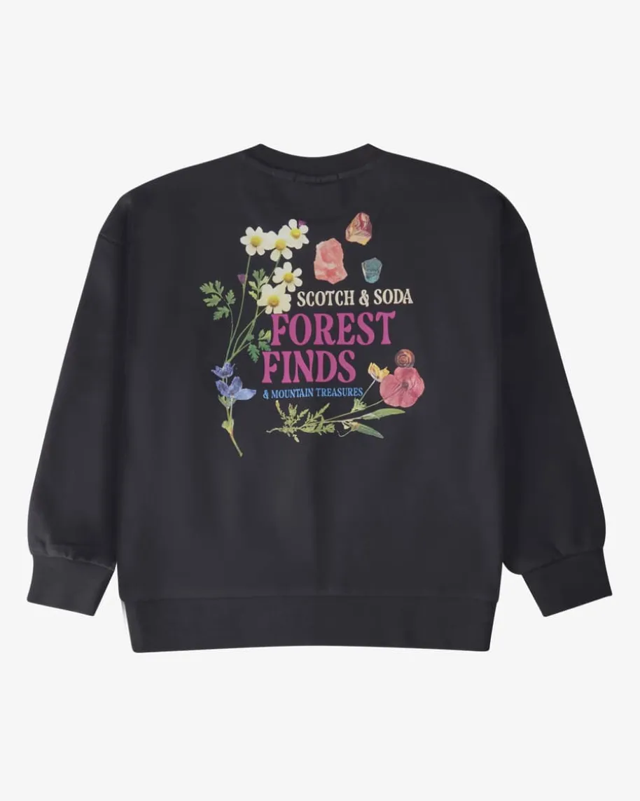 Sweatshirt für Mädchen von Scotch & Soda in Schwarz und Bunt. Das Modellpräsentiert sich in legerer Aufmachung mit rückseitigem Print mit floralemMotiv, während sportive Details das Design gekonnt abrunden.