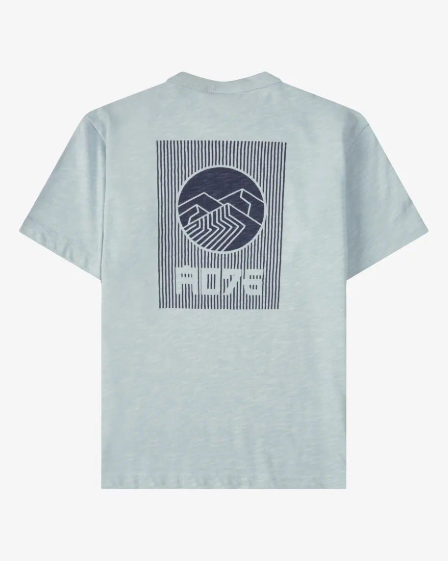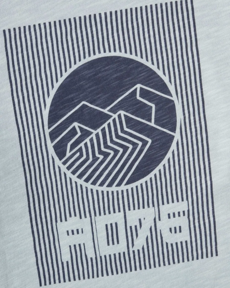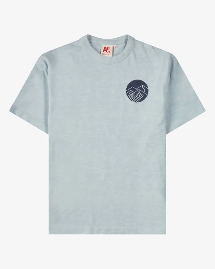 T-Shirt für Jungen von AO76 in Hellblau und Navy. Das Modell begeistert mithochwertiger, recycelter Baumwoll-Verarbeitung in semi-transparenter Optik,während der beidseitige Print mit grafischem Berg-Motiv den süßen Style mitbesonderem Charme abrundet.