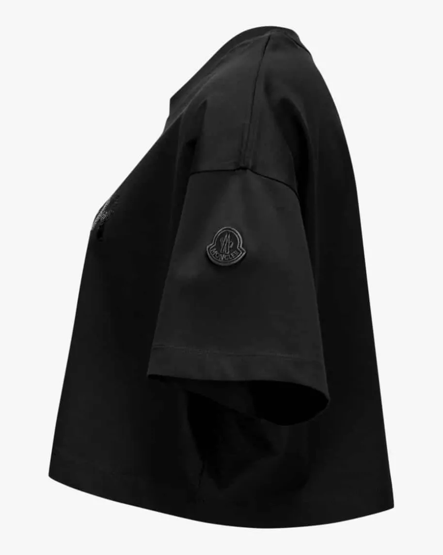 T-Shirt für Damen von Moncler in Schwarz. Die weite, moderne Passform lässt dasModell zusammen mit der Pailletten-Logo-Applikation zu einem modischen Begleiteravancieren, während die Cropped Optik den Style harmonisch abrundet.