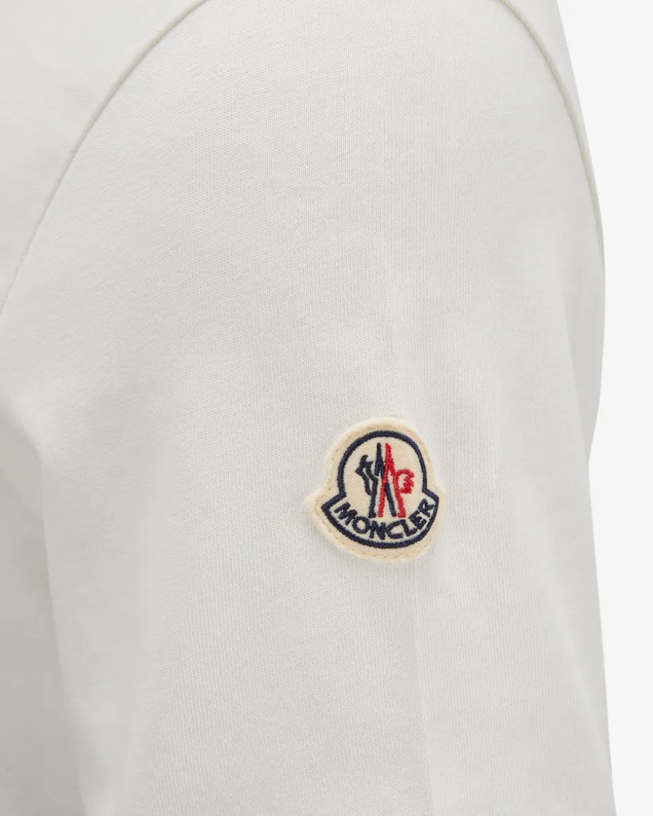 T-Shirt für Herren von Moncler in Weiß. Mit diesem Modell aus hochwertiger Bio-Baumwolle präsentiert das Luxuslabel einen vielseitigen Alltagsbegleiter inschlichter Aufmachung, während die sportive Logo-Stickerei dem Gesamtbild dasgewisse Etwas verleiht.