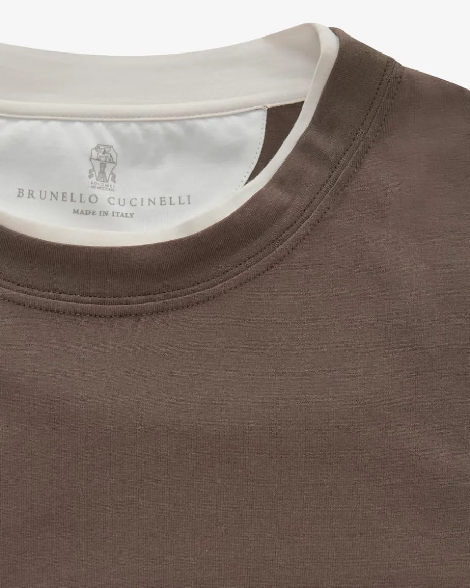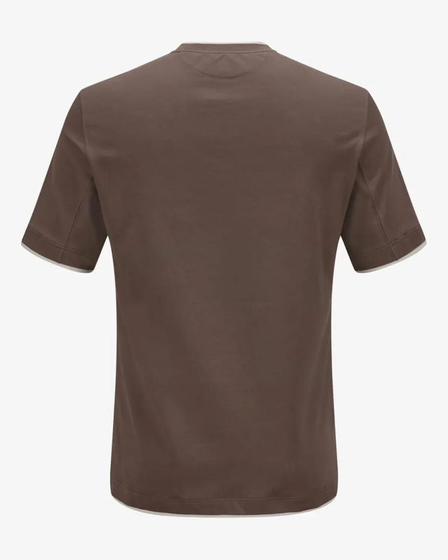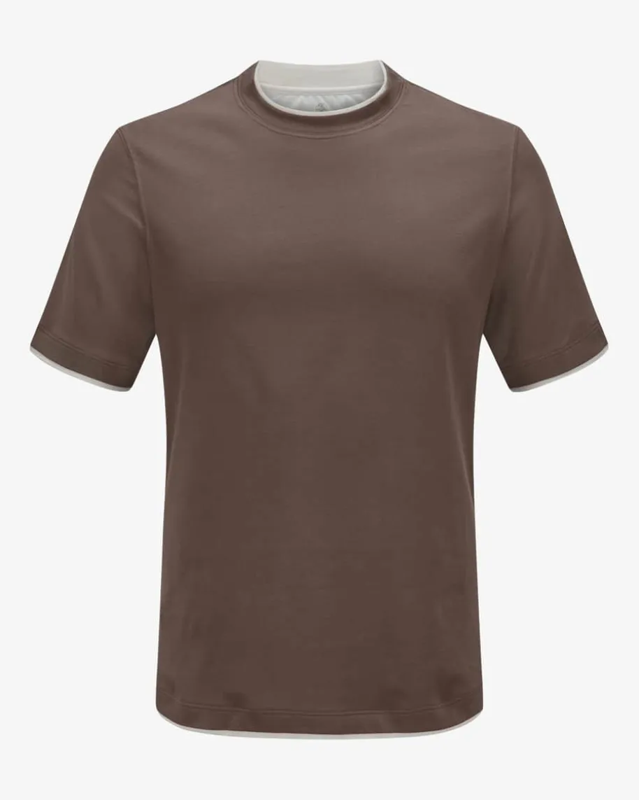 T-Shirt für Herren von Brunello Cucinelli in Dunkelbraun und Creme. Das Modellaus angenehmer Baumwoll-Qualität überzeugt mit weichem Griff, während daszweilagige Design in kontrastierender Farb-Kombination für das gewisse Etwassorgt.