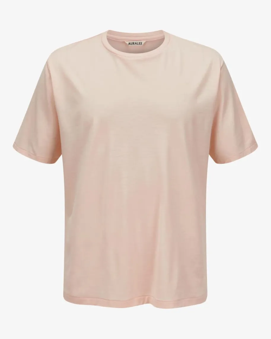 T-Shirt für Herren von Auralee in Apricot. Das japanische Label vereint gekonntsubtilen Luxus und Komfort – immer mit dem Fokus auf hochwertige Materialien.Dank leichter Woll-Verarbeitung in Jersey-Qualität erhält das Modell eineangenehm-softe Haptik, während die weite Schnittführung in Kombination mit derminimalistischen Pastell-Nuance einen modischen Casual-Look kreiert.