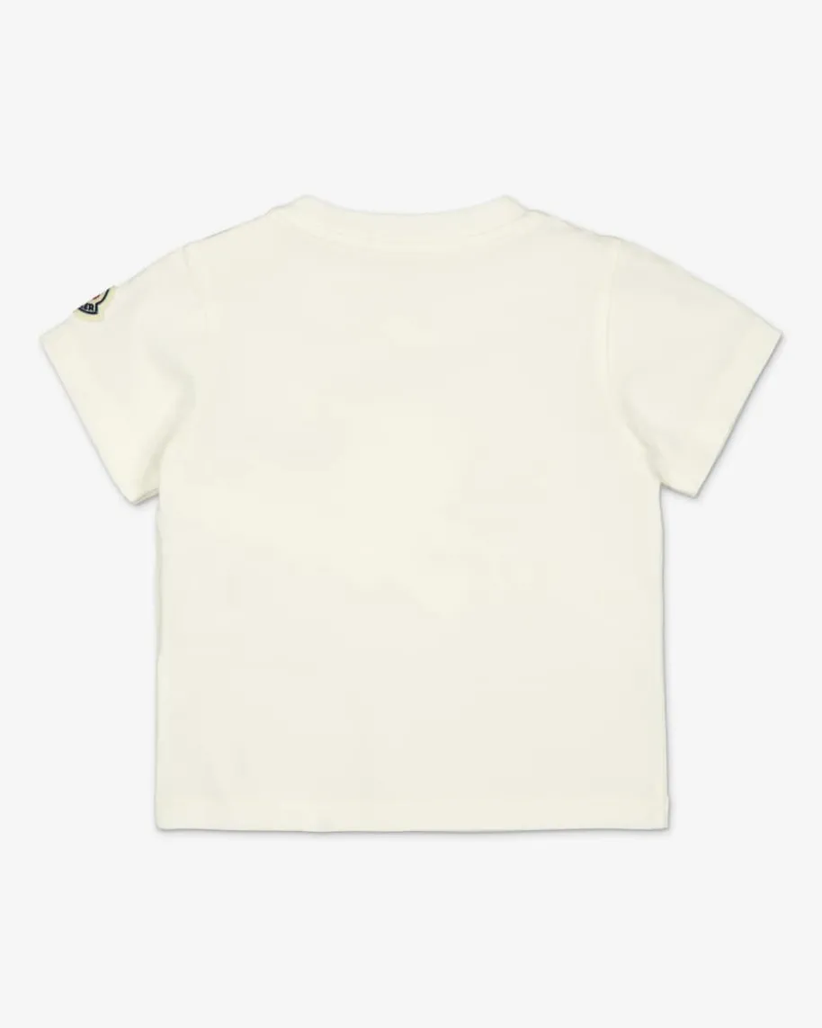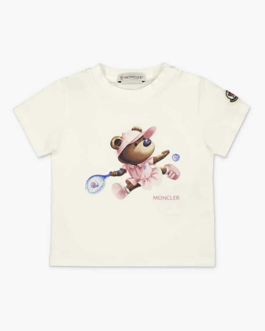 T-Shirt für Babys von Moncler Enfant in Off-White. Für niedliche Tennis-Looks -Das legere Modell aus angenehmer Baumwolle wird durch das verspielte Bärchen-Motiv mit Logo-Details gekonnt in Szene gesetzt.