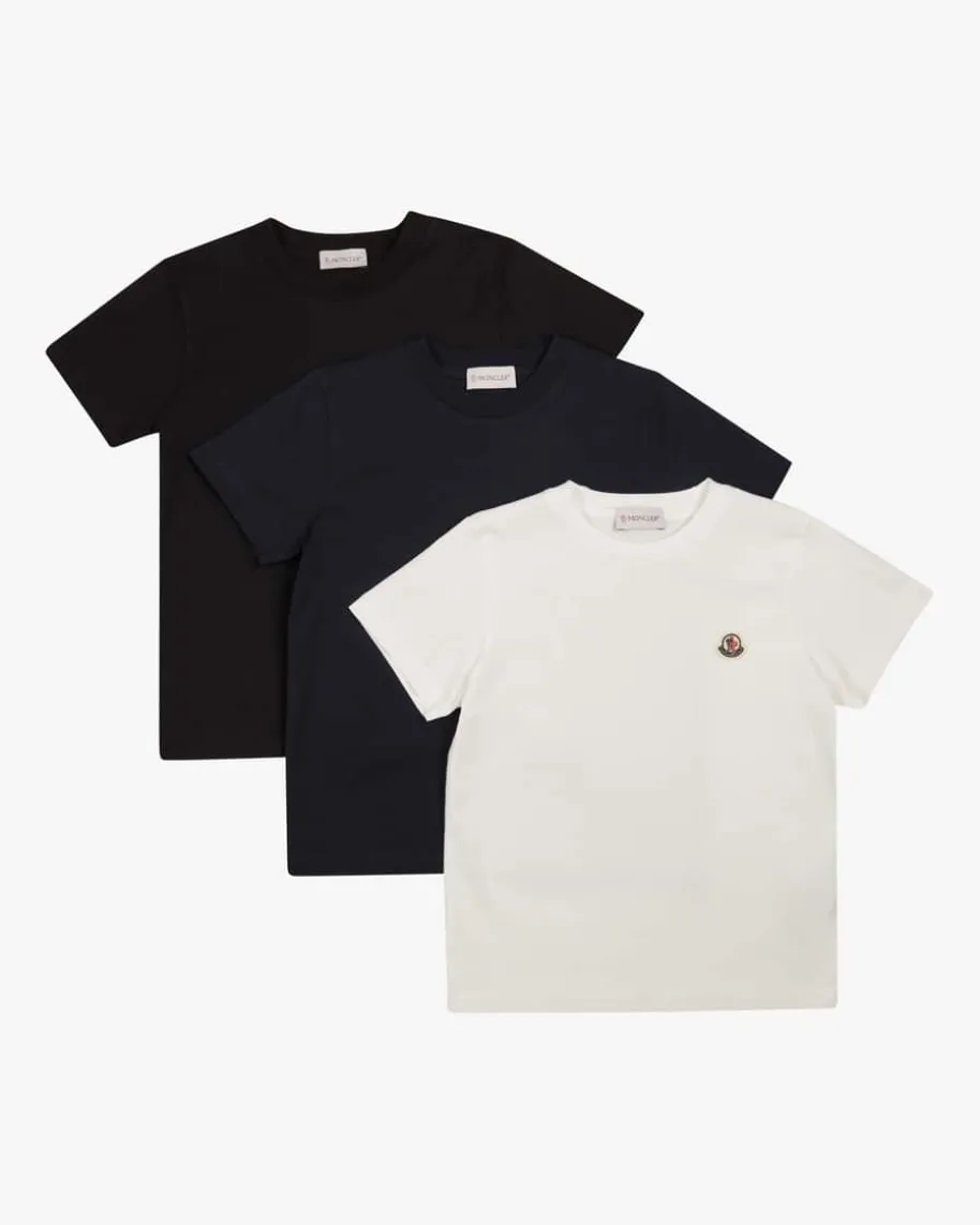 T-Shirt 3er-Set für Jungen von Moncler Enfant in Schwarz, Weiß und Navy.Gefertigt aus angenehmer Baumwolle punktet das Modell mit einem weichen Griff,während das schlichte Design einen vielseitigen Favoriten für Ihre Kleinenkreiert.