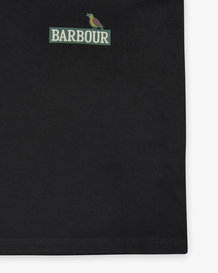 T-Shirt für Herren von Barbour in Schwarz, Grün und Creme. Das Modell überzeugtmit hochwertiger Baumwoll-Qualität und weiter Passform, während der beidseitigePrint mit originellem Logo-Motiv den legeren Look modisch in Szene setzt.