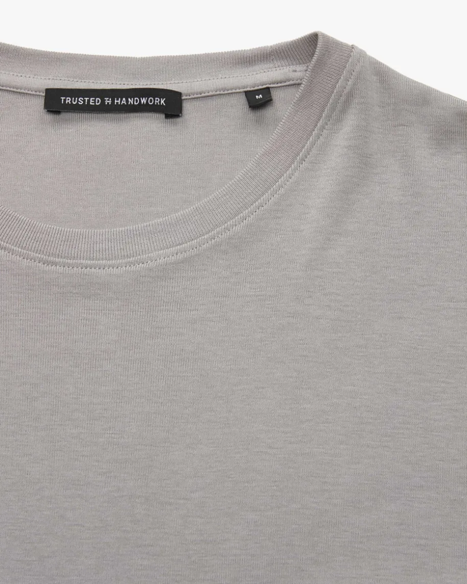 T-Shirt für Herren von Trusted Handwork in Grau. Mit Liebe und Leidenschaftdesignt das Label nachhaltig produzierte, handgefertigte Kleidung. Das Modellbegeistert dank der Verwendung von softer Pima-Baumwolle in fein gerippterAufmachung als hochwertiges Basic für vielseitige Casual-Looks.