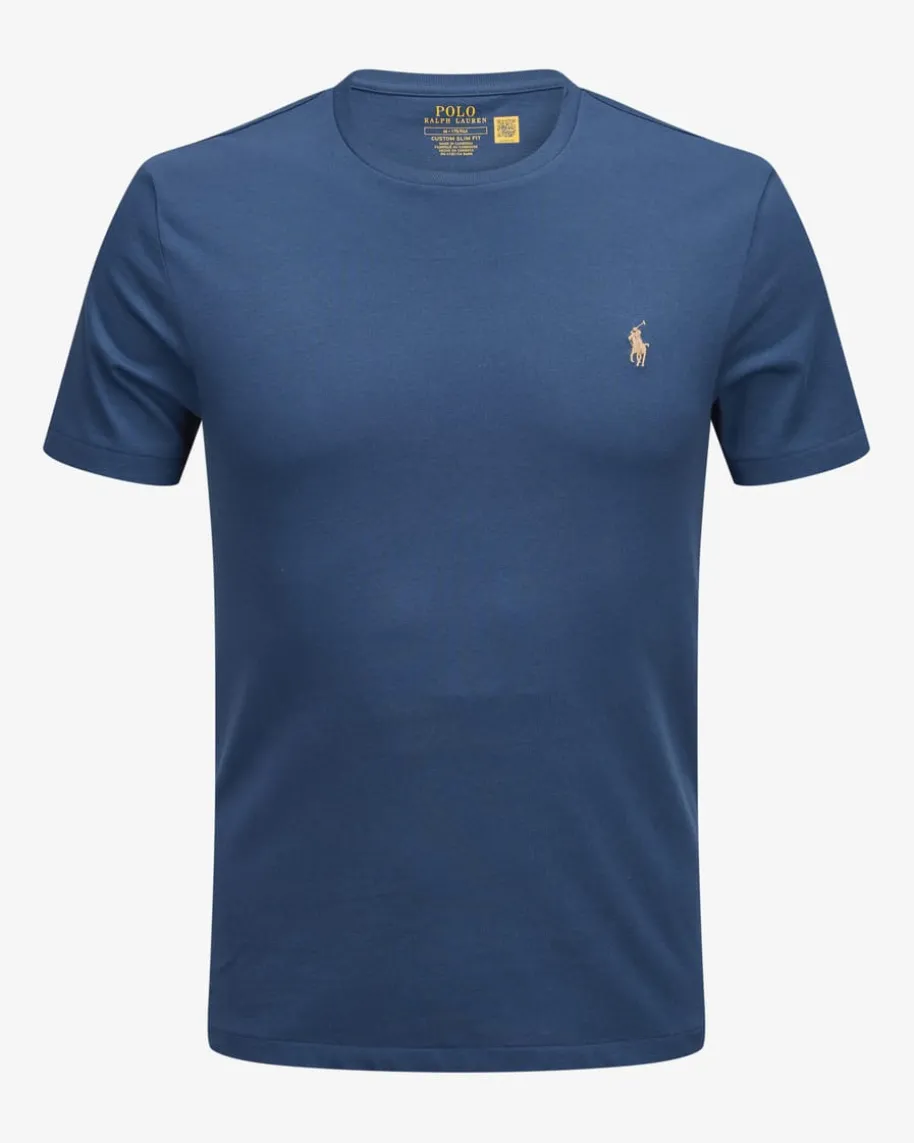 T-Shirt Custom Slim Fit für Herren von Polo Ralph Lauren in Dunkelblau. Mitschmalem Schnitt und aus hochwertiger Baumwolle gefertigt, präsentiert sich dasModell in modisch legerer Aufmachung. Der Rundhals-Ausschnitt setzt einenklassischen Akzent, während die charakteristische Logo-Stickerei auf der Brustdas Gesamtbild gekonnt abrundet.