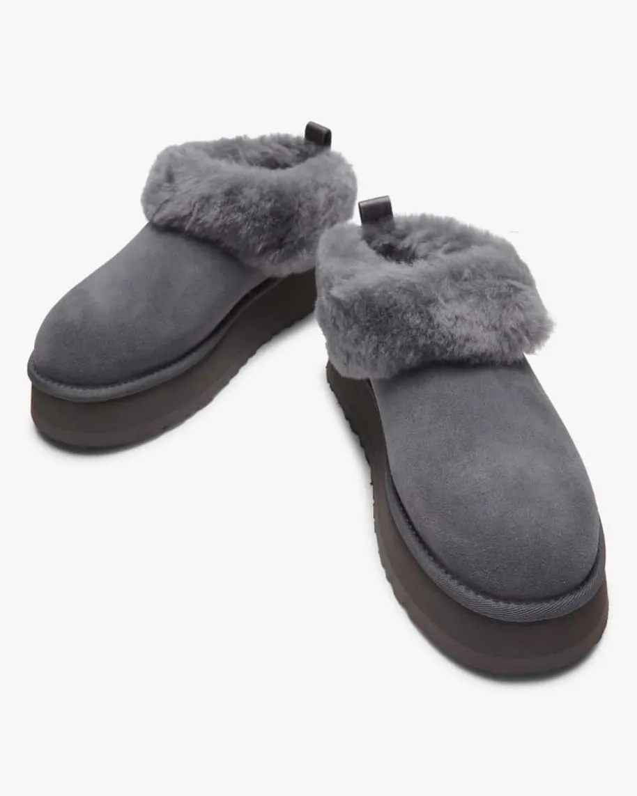 Tazzelle Pantoletten für Damen von Ugg in Blaugrau. Das Modell desKult-Labels überzeugt dank des weichen Lammfell-Futters mit hohem Wohlfühl-Faktor, währenddas hochwertige Veloursleder ein zeitloses Design kreiert. Zusätzlich bietet diesowohl robuste als auch dämpfende Plateausohle extra Komfort.