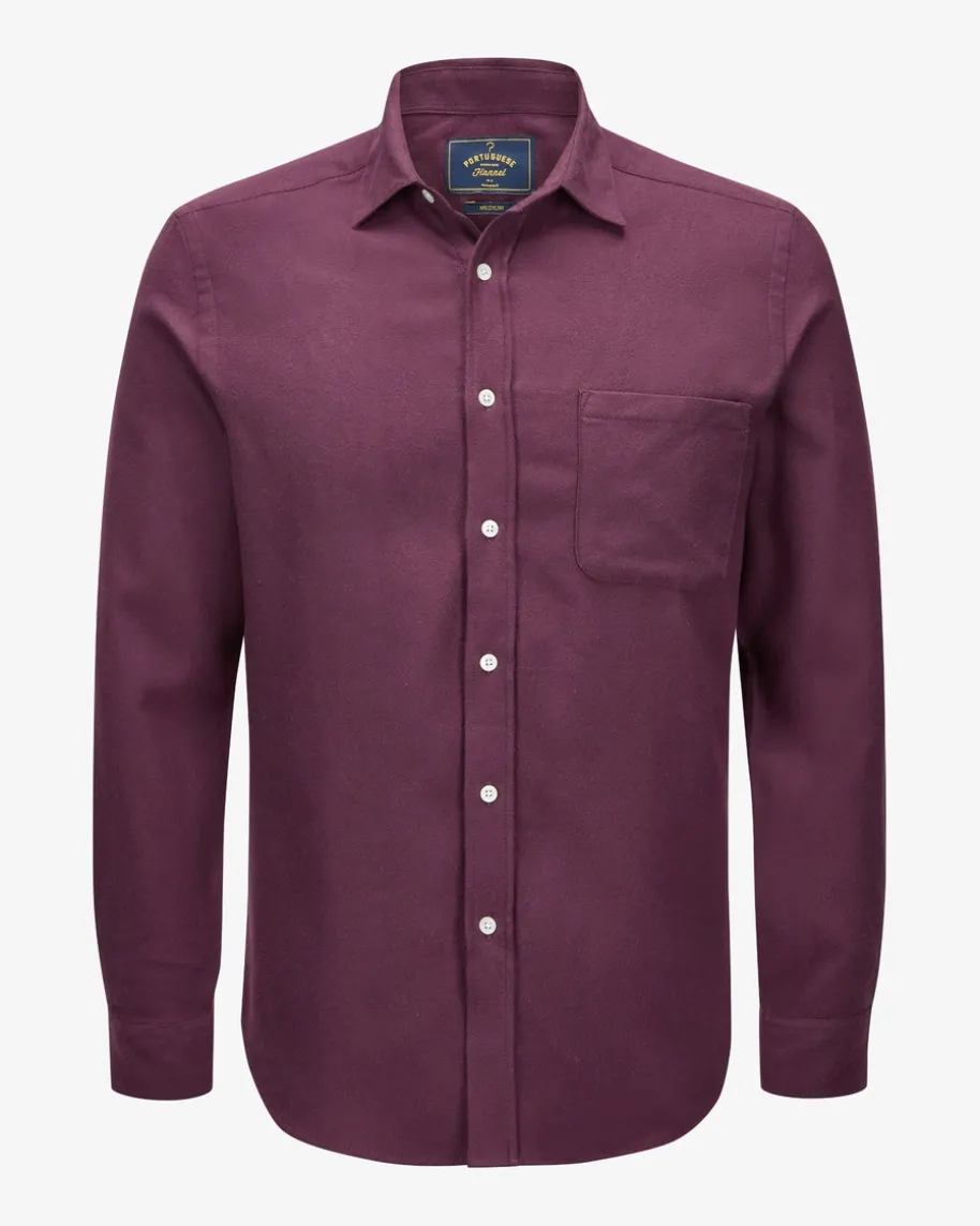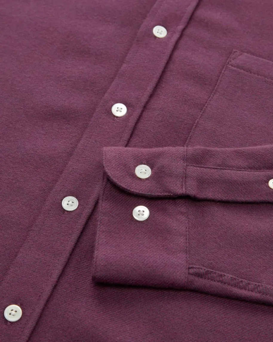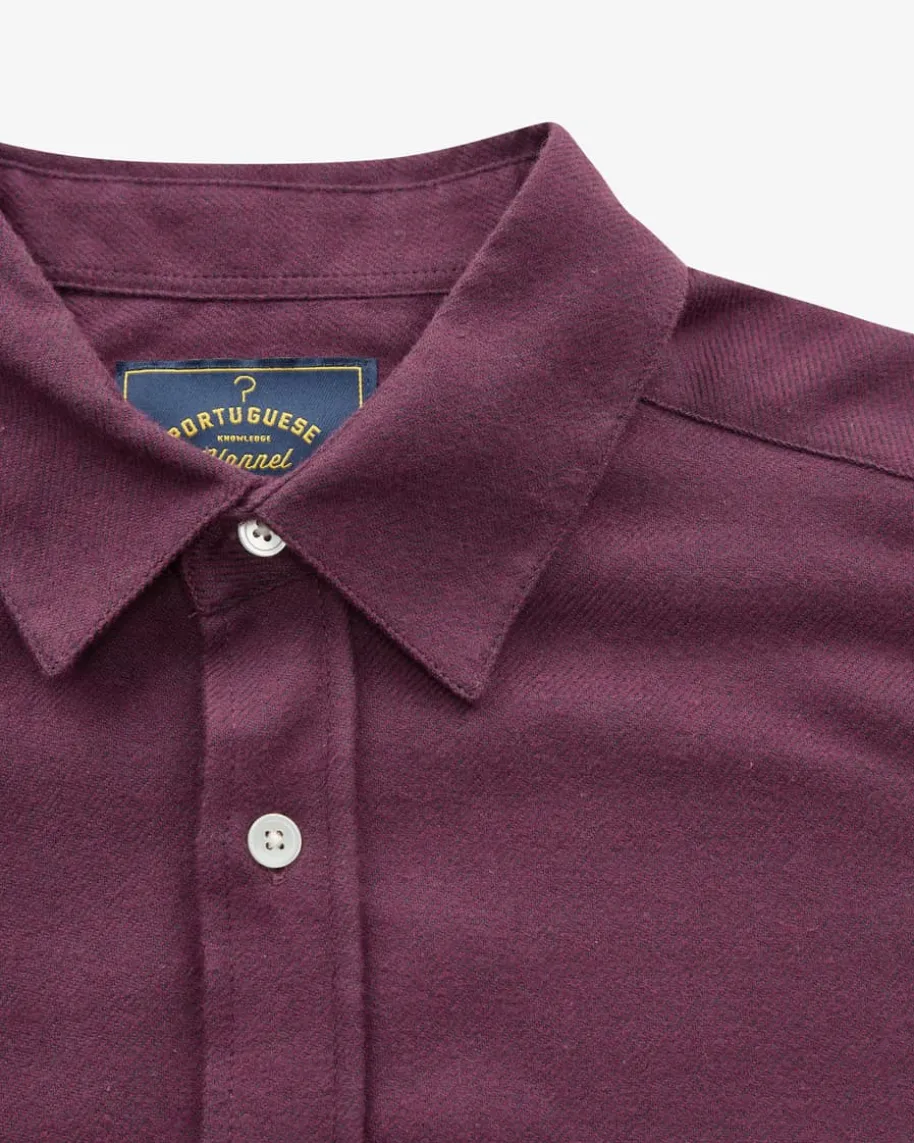 Teca Flanellhemd für Herren von Portuguese Flannel in Bordeaux. Das Modell inweicher Haptik und hochwertiger Baumwoll-Qualität überzeugt in meliertem Dessin,während die klassischen Details einen maskulinen Begleiter schaffen, der sichvielseitig kombinieren lässt.