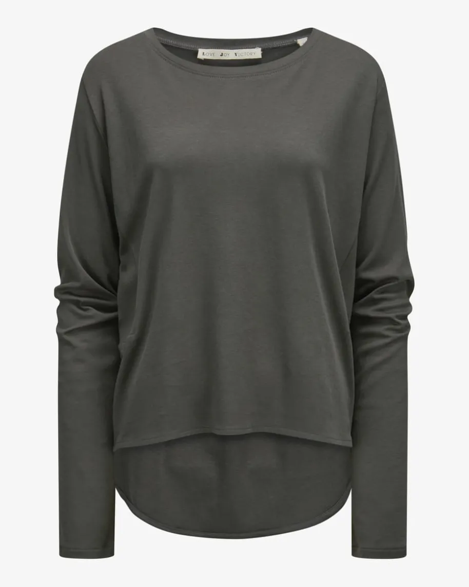 Tenja Sweatshirt für Damen von Love Joy Victory in Dunkelgrau. Das Modellpunktet dank der hochwertigen Bio-Baumwolle mit einer angenehmen Haptik, währenddas schlichte Design durch akzentuierende Logo-Details abgerundet wird.