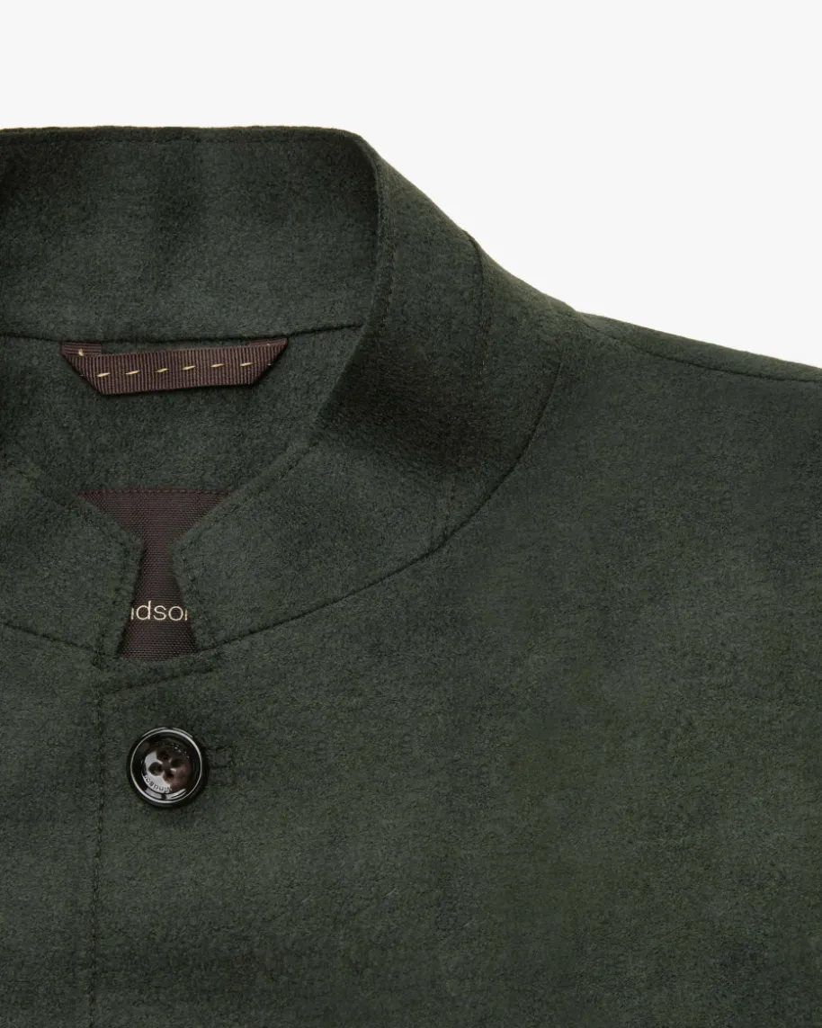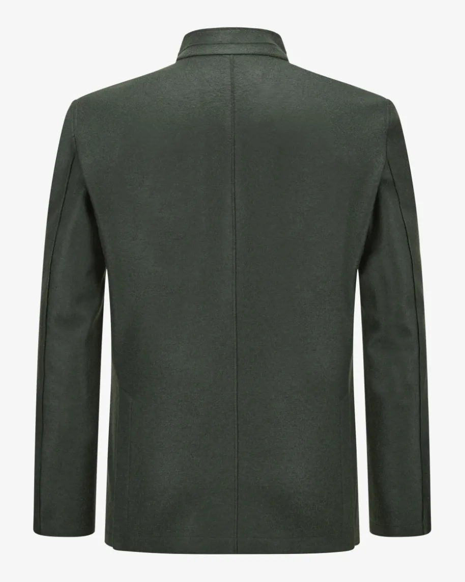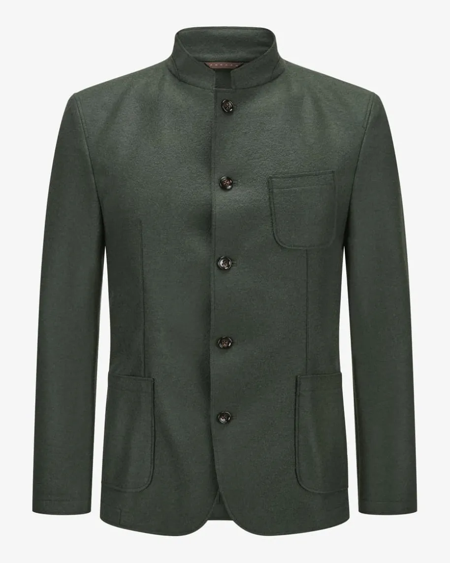 Tesso Sakko für Herren von Windsor in Oliv. Das ungefütterte Stehkragen-Modellerweist sich dank der reinen Woll-Verarbeitung als moderner Casual-Begleiter mitleichter und weicher Haptik – Ein stilsicherer Begleiter für legere Office-Looksoder auf Reisen.