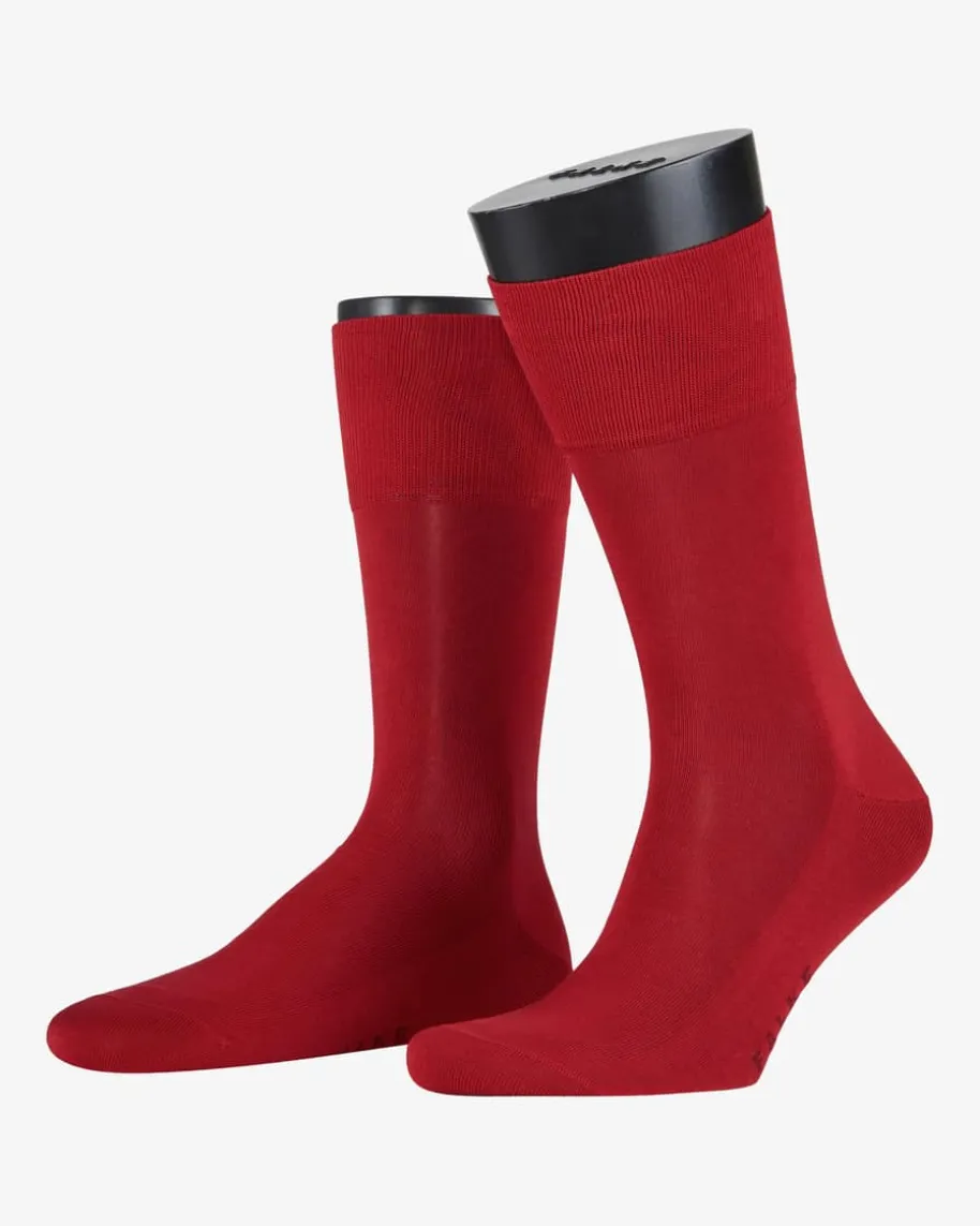 Tiago Strümpfe für Herren von Falke in Rot. Das Modell in feiner Strick-Optiküberzeugt durch die elastische Material-Qualität und garantiert dadurch einangenehmes Tragegefühl, während die kräftige Farbe stilvolle Akzente setzt.