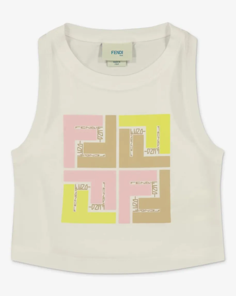 Top für Mädchen von Fendi Kids in Weiß und Bunt. Während die elastischeMaterial-Qualität für einen angenehmen Tragekomfort sorgt, garantiert dieverkürzte Passform zusammen mit dem Logo-Print auf der Front einen modischenLook.