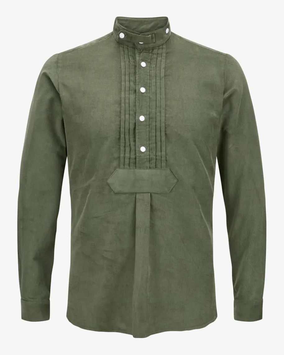 Trachten-Cordhemd Schmal für Herren von Hund Sans scho in Khaki. Die beidenMünchner Freunde gründeten ihr Label um zeitgemäße Trachtenhemden mit demgewissen Etwas zu entwerfen, die leicht zu tragen sind und auf jedemOktoberfest- oder Volksfest-Besuch hohen Tragekomfort bieten. Dieses Pfoad-Modell besticht durch stilvolle Biesen-Details entlang der Knopfleiste, währenddie feine Cord-Qualität einen modernen Charakter verleiht.