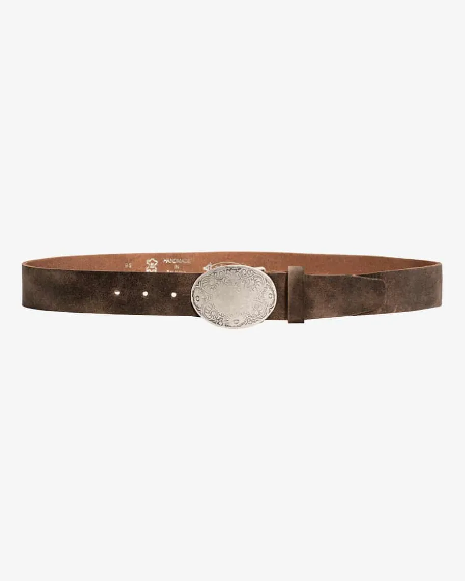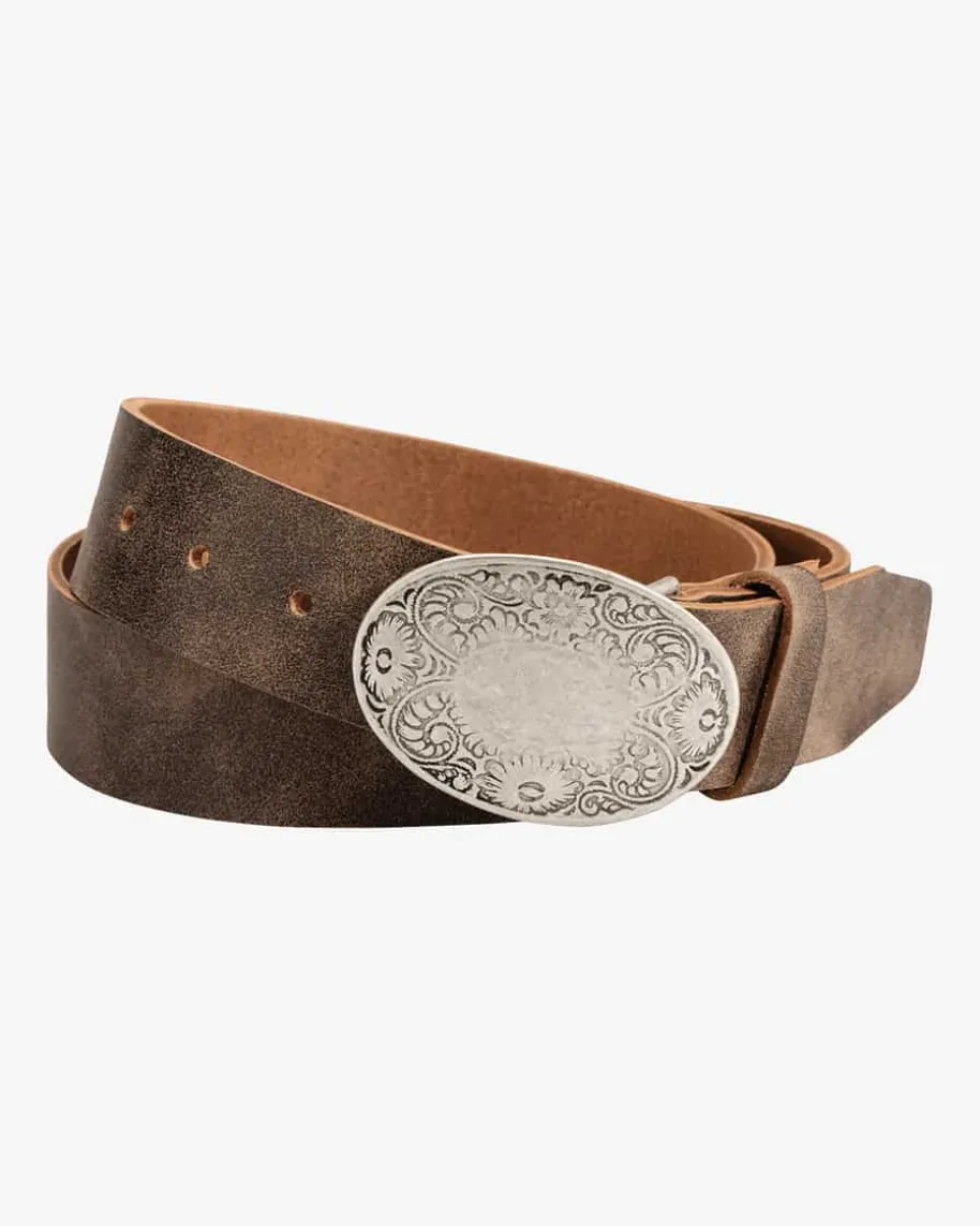 Trachten-Gürtel für Herren von Töpfer in Braun. Handgefertigt in Bayern und inedlem Leder präsentiert sich der rustikale Gürtel. Eine traditionelle Noteverleiht die dekorative Motiv-Schließe. Vollendet wird das Design durch dieAntik-Prägung des Leders.