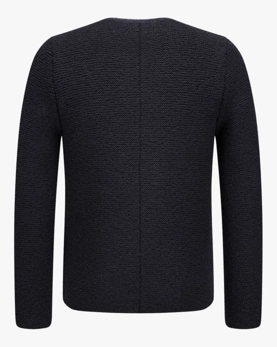 Trachten-Handstrickjacke für Herren von Pezzo in Marine. DieStrickjacke aus angenehmer Schurwolle präsentiert sich intraditioneller Aufmachung. Kontrastierende Paspelierungen amRundhals-Ausschnitt, an der durchgehenden Knopfleiste sowie an denzwei Taschen verleiheneine besondere Note, während echte Hornknöpfe das rustikaleGesamtbild gekonntabrunden.