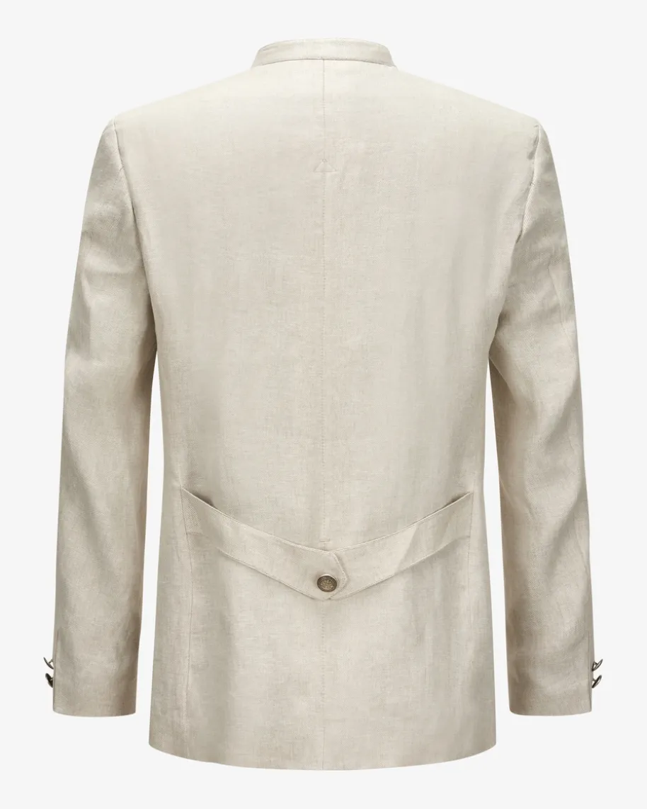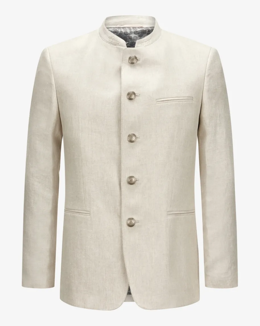 Leinen-Trachten-Janker für Herren von Lodenfrey in Hellgrau. Das Modell punktetdank der hochwertigen Leinen-Qualität mit einer angenehmen Haptik, währendklassische Details einen traditionellen Favoriten für zahlreiche Anlässeschaffen.
