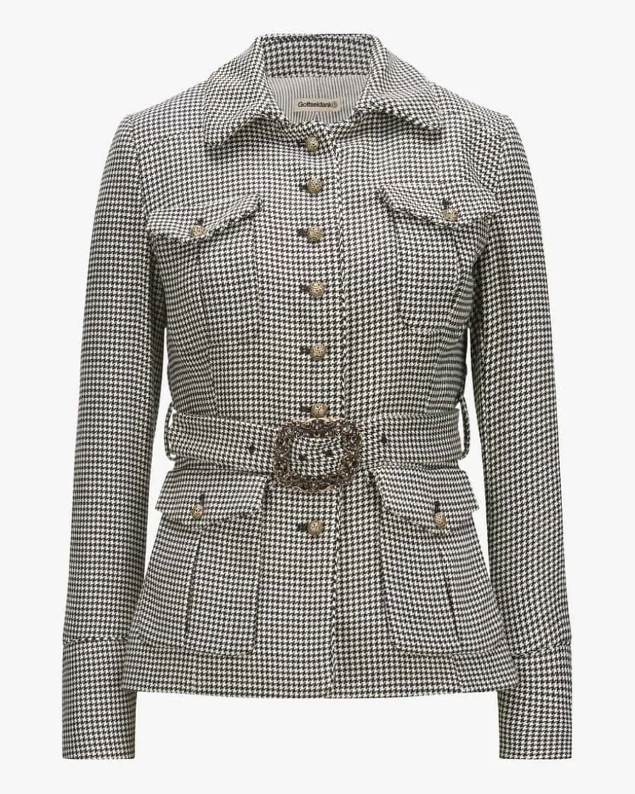 Trachten-Kombi-Jacke für Damen von Gottseidank in Schwarz und Weiß. Das Modellpräsentiert sich dank der klassischen Aufmachung als modischer Favorit fürklassische Looks und traditionelle Anlässe. Zugleich besticht die hochwertigeSchurwoll-Qualität mit angenehmen Tragemomenten