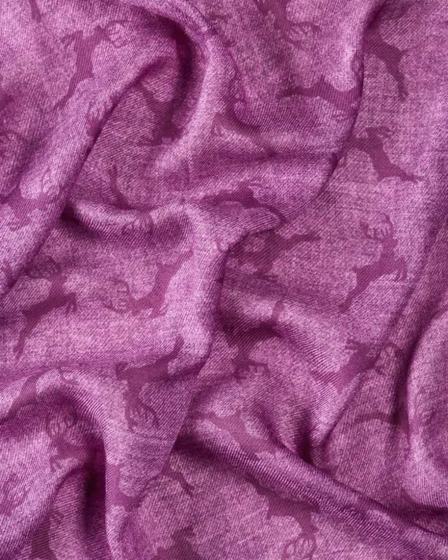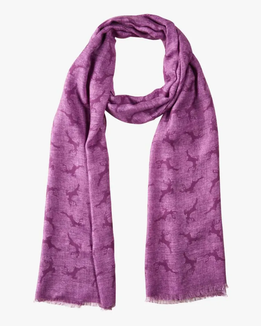 Trachten-Schal für Herren von Luise Steiner in Violett. Während die leichteMaterial-Verarbeitung eine besonders softe Haptik verleiht, wird durch dasAllover-Hirsch-Dessin ein traditionelles Accessoire für stilvolle Trachten-Looksgeschaffen.