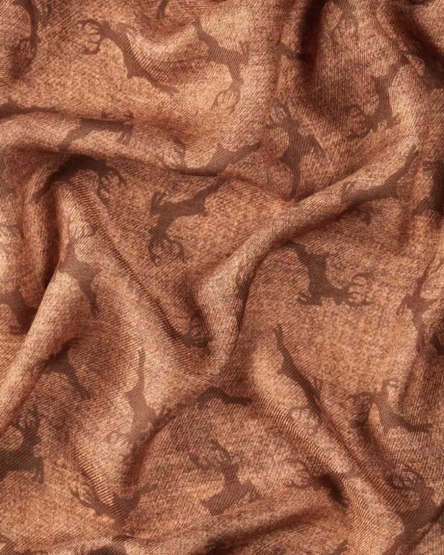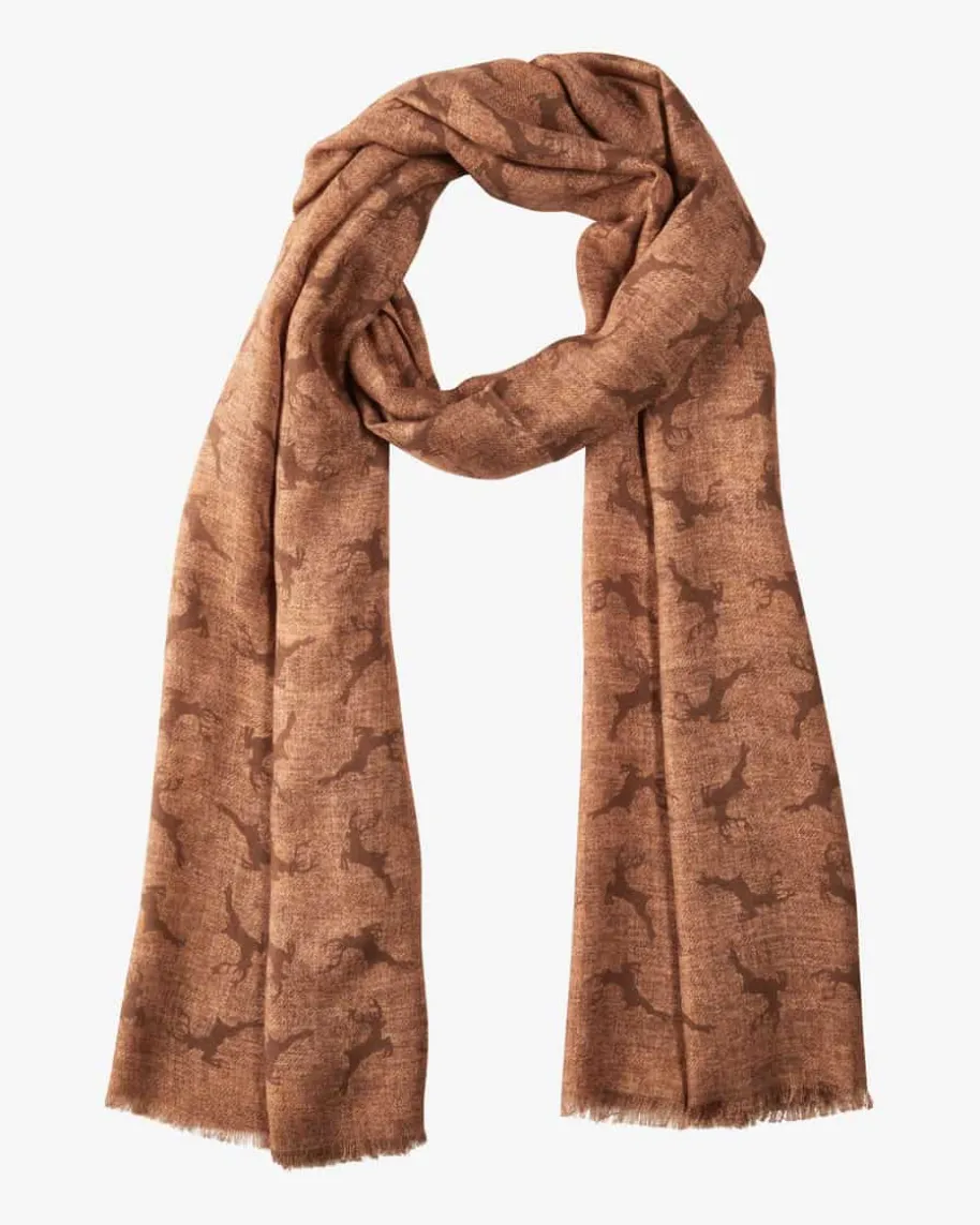 Trachten-Schal für Herren von Luise Steiner in Terrakotta. Während dieleichte Material-Verarbeitung eine besonders softe Haptik verleiht, wird durchdas Allover-Hirsch-Dessin ein traditionelles Accessoire für stilvolle Trachten-Looks geschaffen.