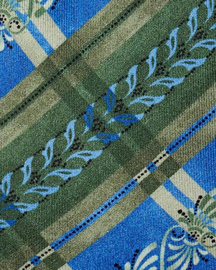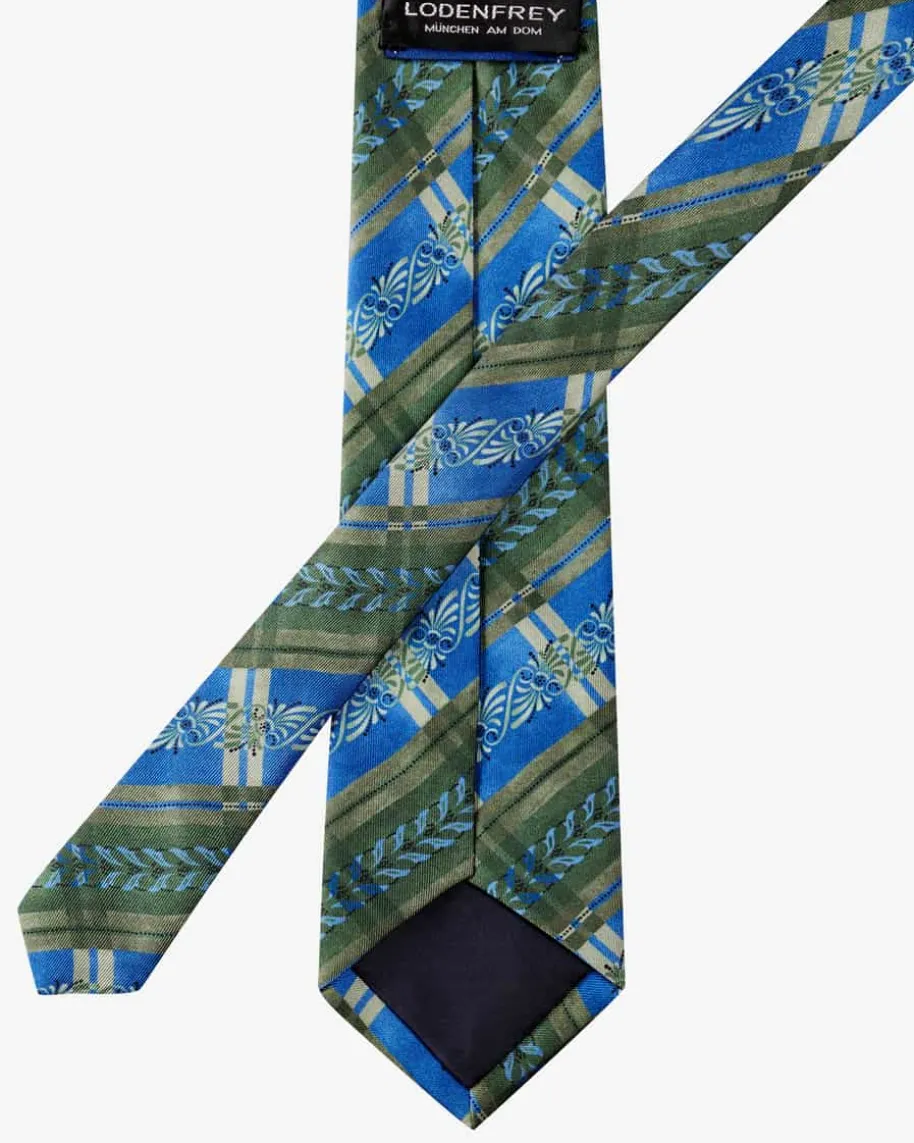 Trachten-Seidenkrawatte für Herren von Luise Steiner in Blau und Moosgrün. Dankder Verwendung von hochwertiger Seide erhält das Modell eine edel changierendeQualität. Ein traditionelles Muster rundet das Design gekonnt ab.