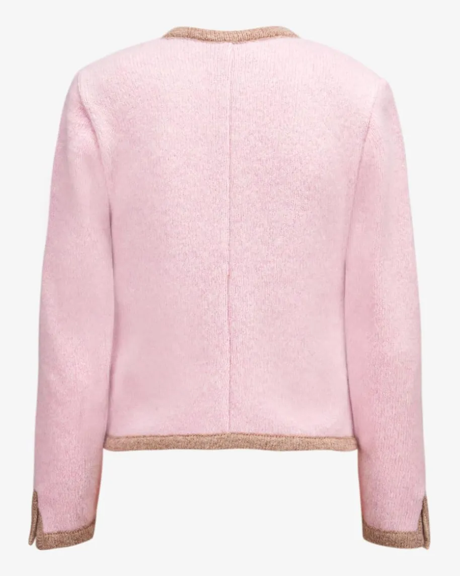 Trachten-Strickjacke für Damen von Mirabell in Rosé und Beige. Diehochwertige Schurwoll-Qualität verleiht dem klassischen Modell eineunverwechselbare Haptik, während goldfarbene Wappenknöpfe sowie kontrastierendeElemente einen traditionellen Look mit moderner Note schaffen.