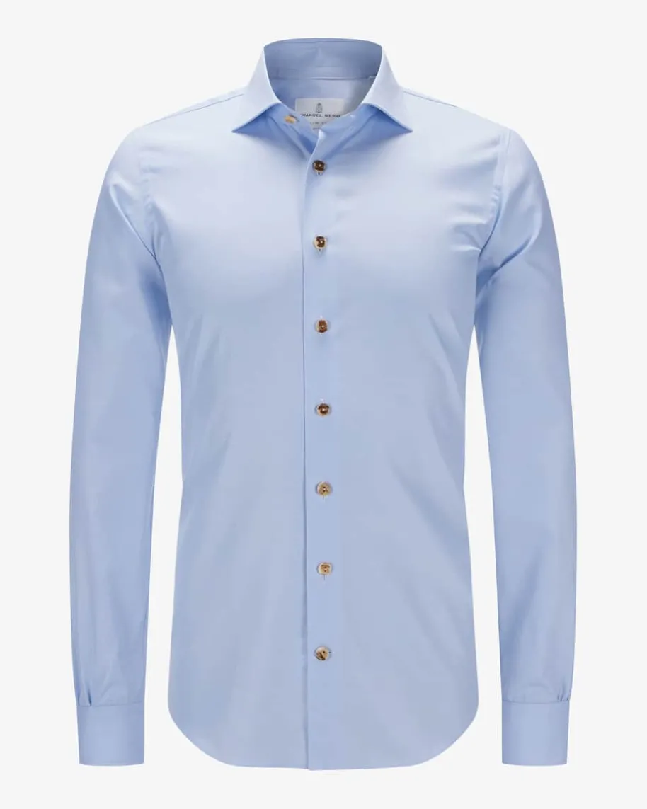 Trachtenhemd Slim Fit für Herren von Emanuel Berg in Hellblau. Das Modellüberzeugt durch die schmale Passform und die feine Webqualität aus angenehmerBaumwolle, während rustikale Knöpfe in Horn-Optik besondere Akzente setzen.