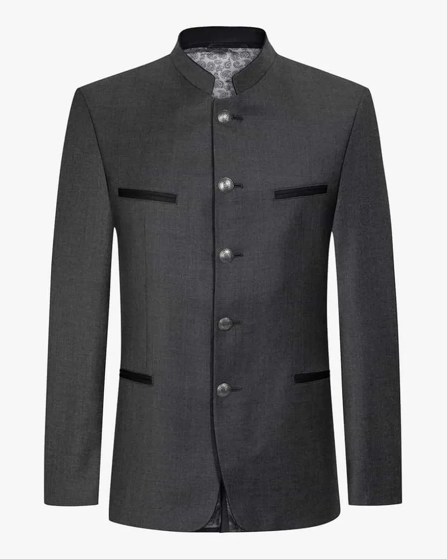 Traunstein Trachten-Anzug für Herren von LODENFREY in Anthrazit. Kreation ausdem eigenen Haus – Dieser edle Anzug sorgt bei allen traditionellen Anlässen füreinen stilvollen Auftritt und besticht vor allem durch zeitloses Design, welchesdank Wappen-Knöpfen festlich vollendet wird.
