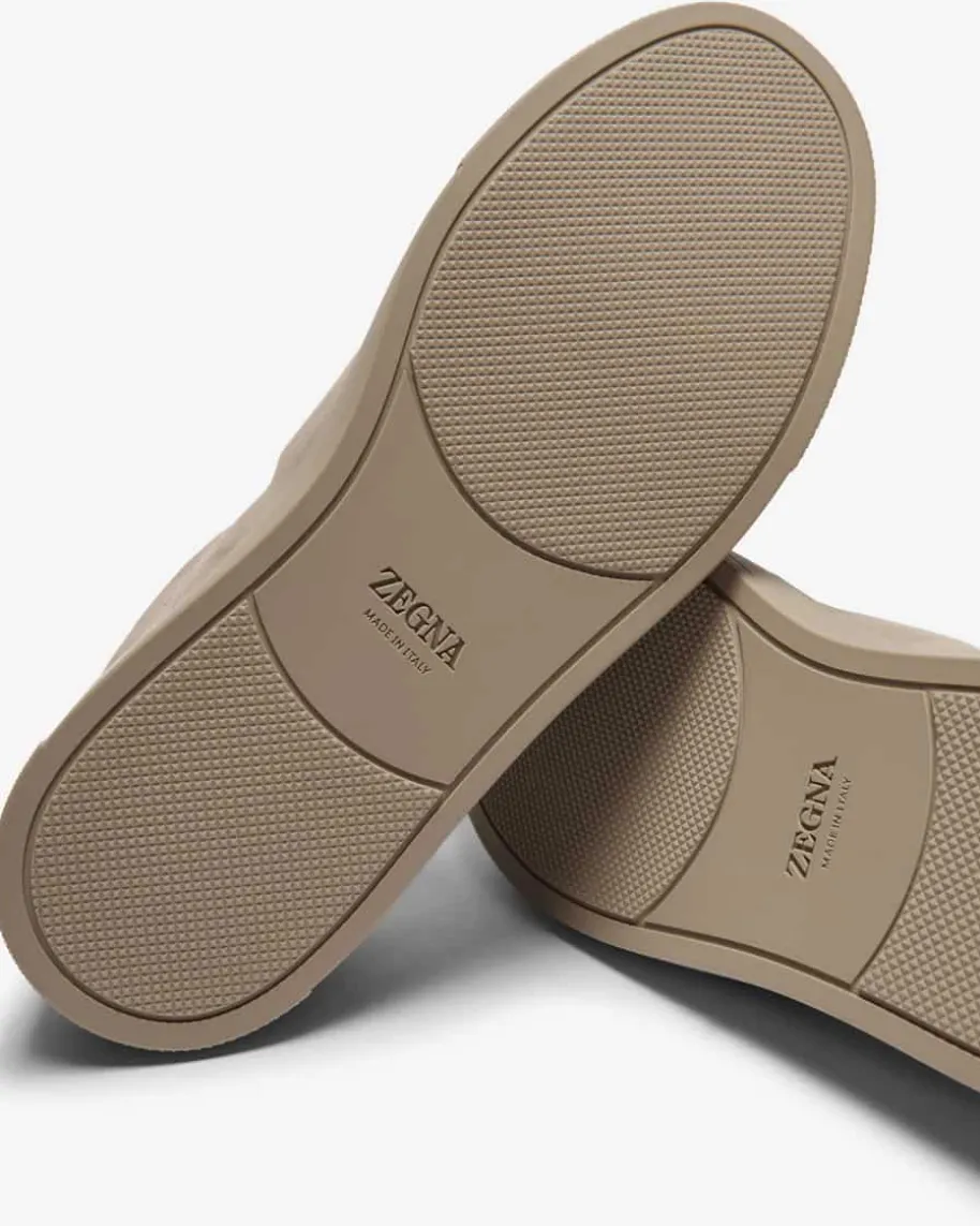 Triple Stitch Sneaker für Herren von Zegna in Sand. Der perfekte Schuh aushochwertiger Veloursleder-Verarbeitung. Die legere Aufmachung setztmaskuline Akzente und garantiert ein stilsicheres Auftreten im Alltag.
