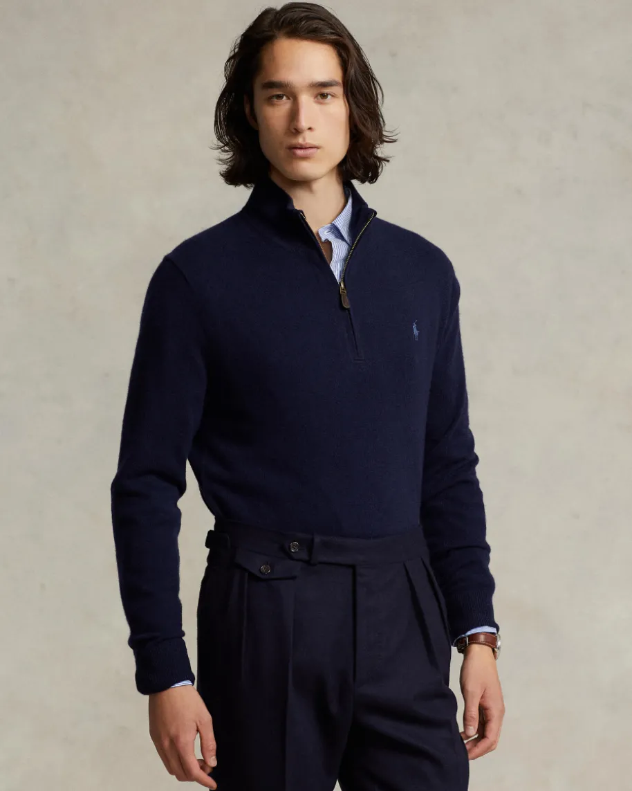 Troyer für Herren von Polo Ralph Lauren in Navy. Das Modell aus angenehmerWolle überzeugt dank dem Troyer-Kragen in stilvoller Aufmachung. Ein zeitloserBegleiter für maskuline Casual-Looks.