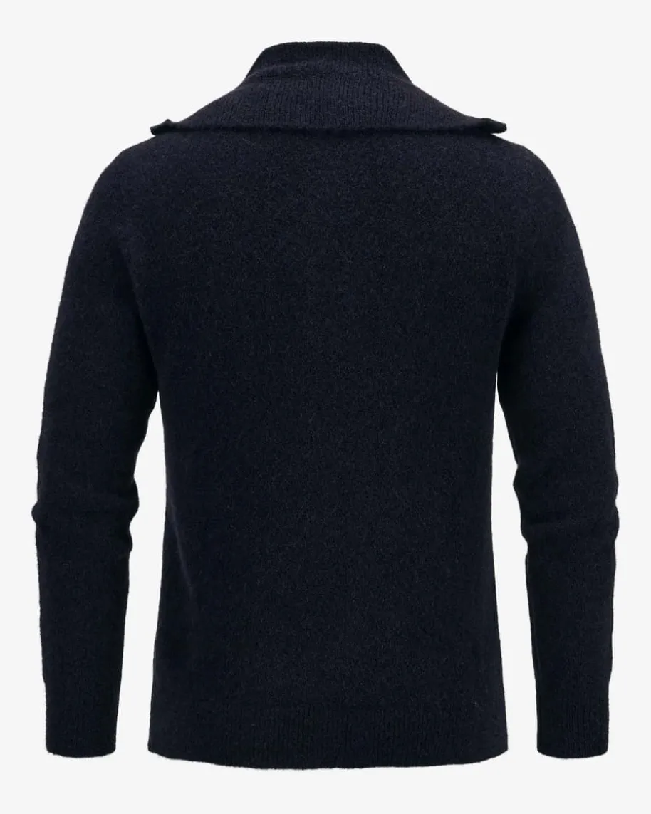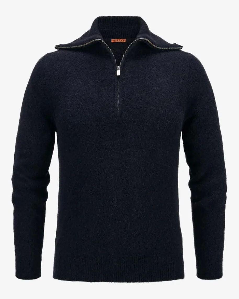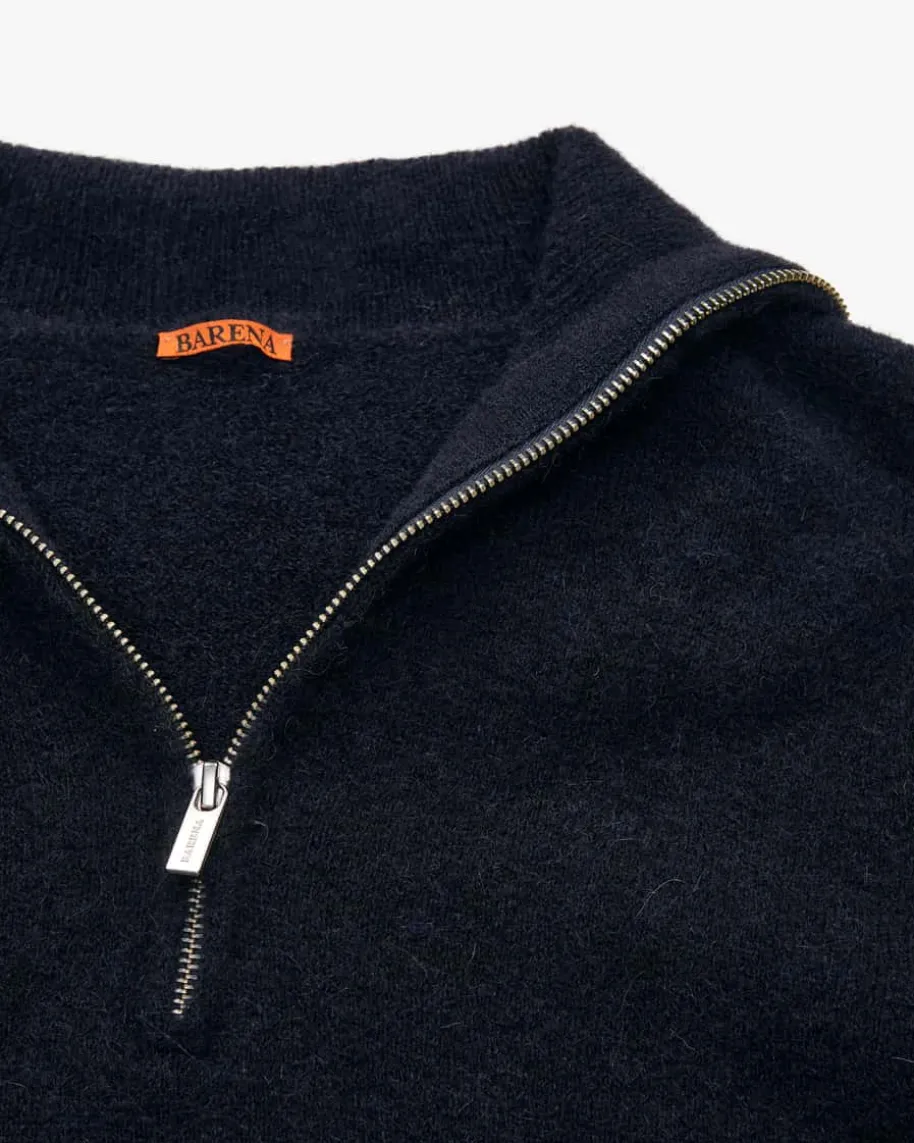 Troyer für Herren von Barena in Navy. Während der hochwertige, elastischeAlpakawoll-Mix sowohl haptisch als auch optisch überzeugt, schafft dashandgefertigte Design mit hohem, variabel tragbarem Kragen im Troyer-Style einenhochwertigen Begleiter mit maskulinem Charme.