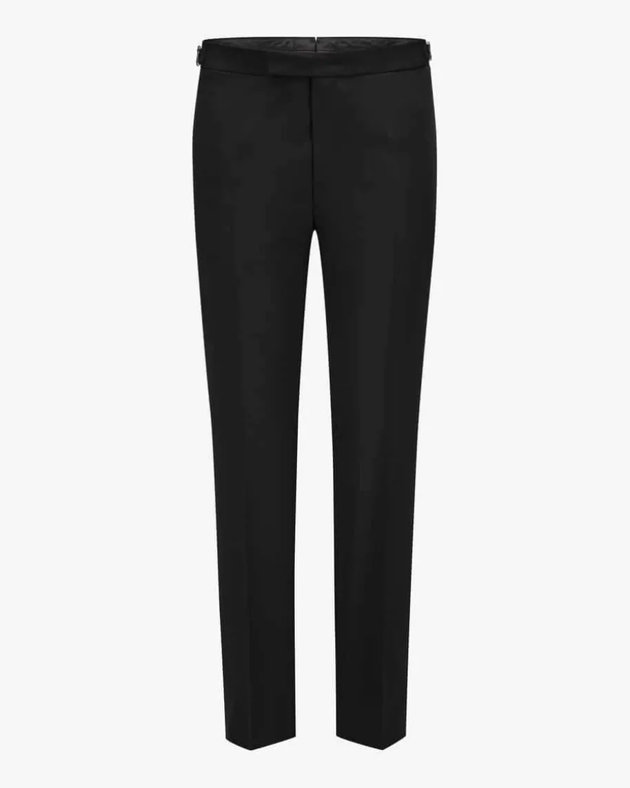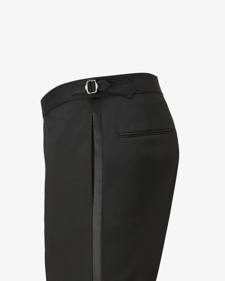 Turo Smoking-Hose für Herren von Windsor in Schwarz. Das Modell überzeugt durchdie hochwertige Schurwoll-Qualität mit edler Haptik, während Bügelfalten undseitliche Galonstreifen einen zeitlosen, eleganten Begleiter für Ihre Smoking-Looks schaffen.