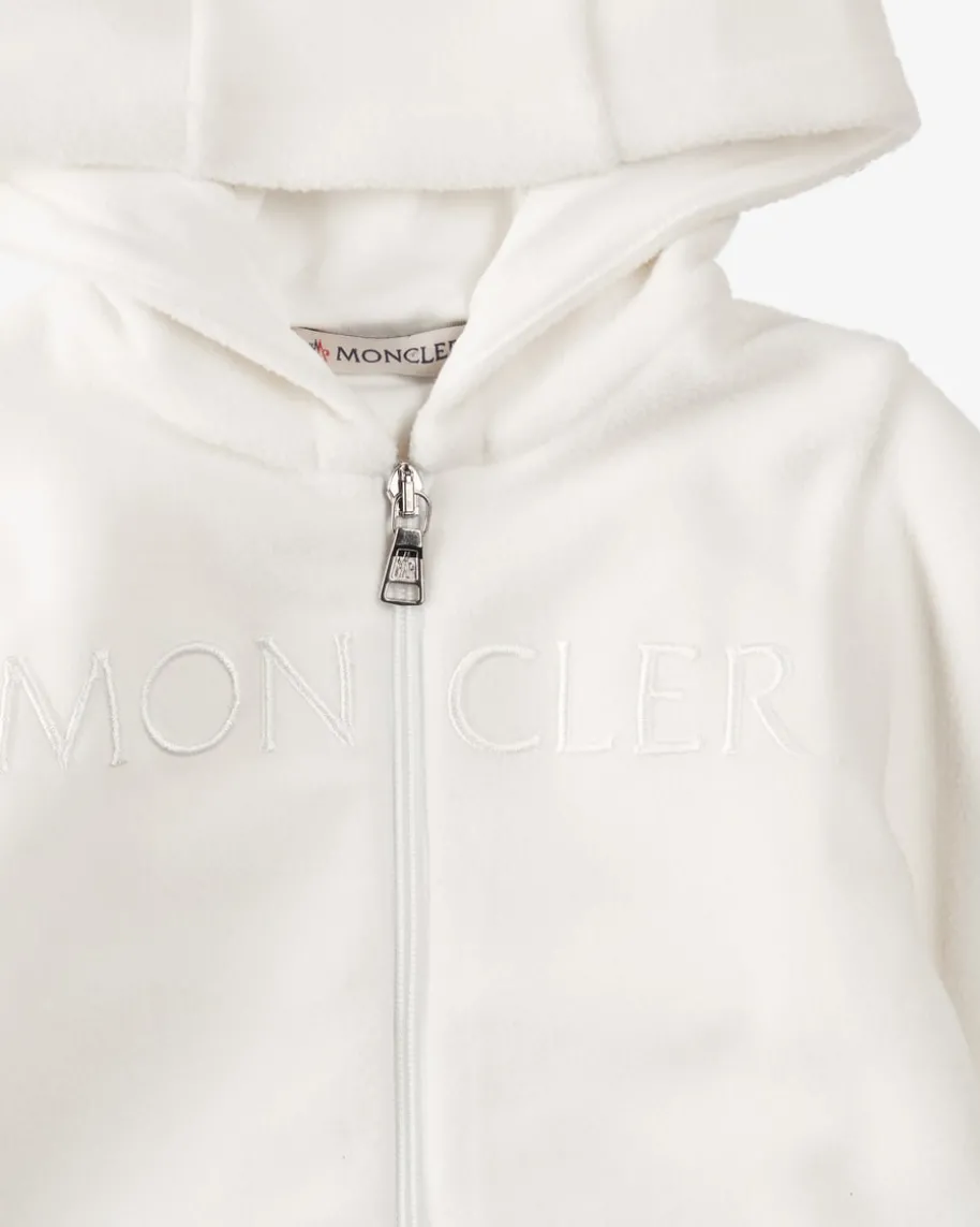 Tutina Fleeceanzug für Babys von Moncler Enfant in Weiß. Das niedliche Modellbegeistert mit besonders kuscheliger Fleece-Verarbeitung, die für angenehmenTragekomfort sorgt. Die Kapuze mit süßen angesetzten Ohren und die tonige Logo-Stickerei runden den wärmenden Look harmonisch ab.