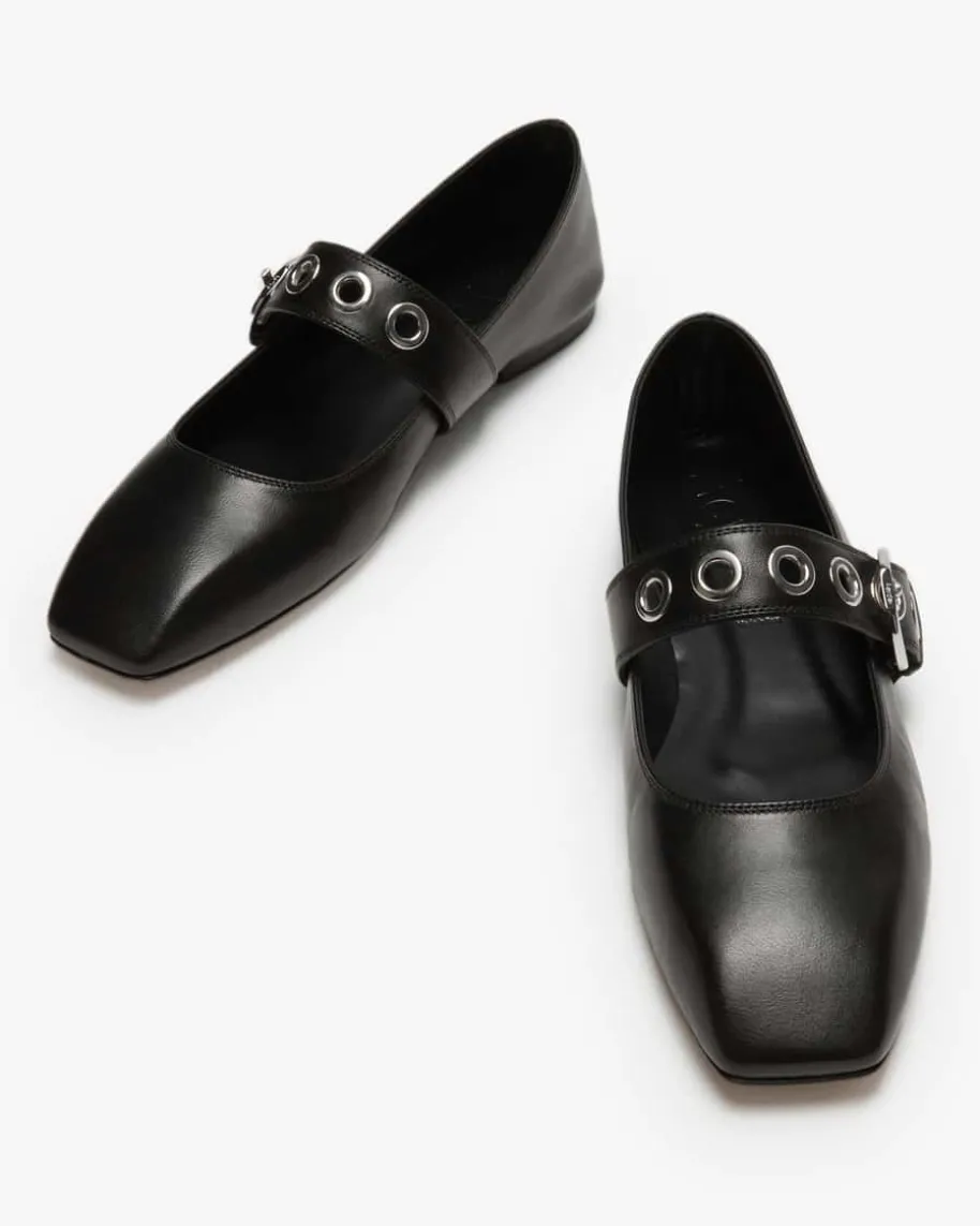 Uma Eyelet Ballerinas für Damen von Aeyde in Schwarz. Während die hochwertig-softe Nappaleder-Aufmachung sowohl optisch als auch haptisch überzeugt, setzendie eckige Form zusammen mit dem breiten Riemen und den silberfarbenen Ösen denLook modisch in Szene.