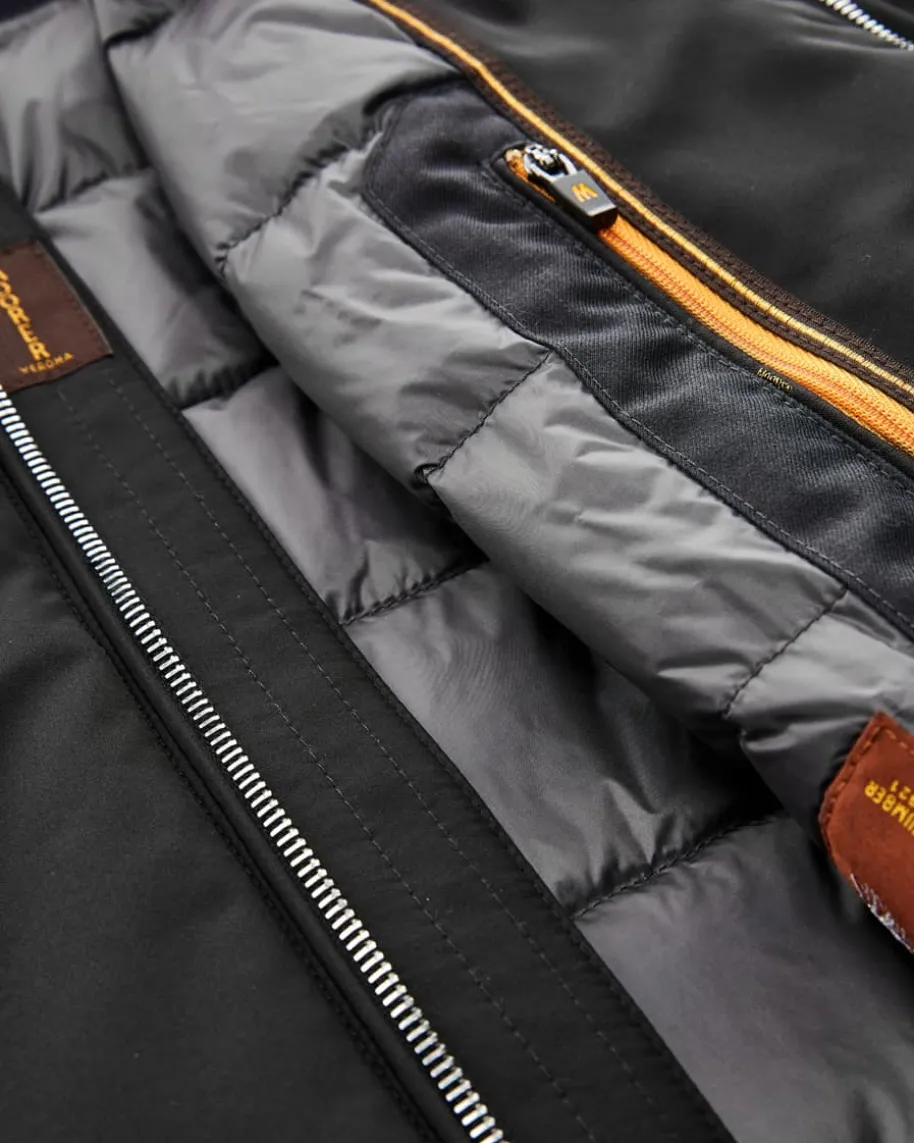 Uros Daunenweste für Herren von Moorer in Schwarz. Unerreichte Funktionalität,edle Materialien und ein Mix aus Eleganz und raffinierten Details stecken hinterdem Label Moorer. Dieses Modell garantiert durch seine hochwertige Daunenfüllungoptimale Wärmeisolierung, während das cleane Design einen vielseitigen Begleiterfür die Übergangszeiten kreiert.