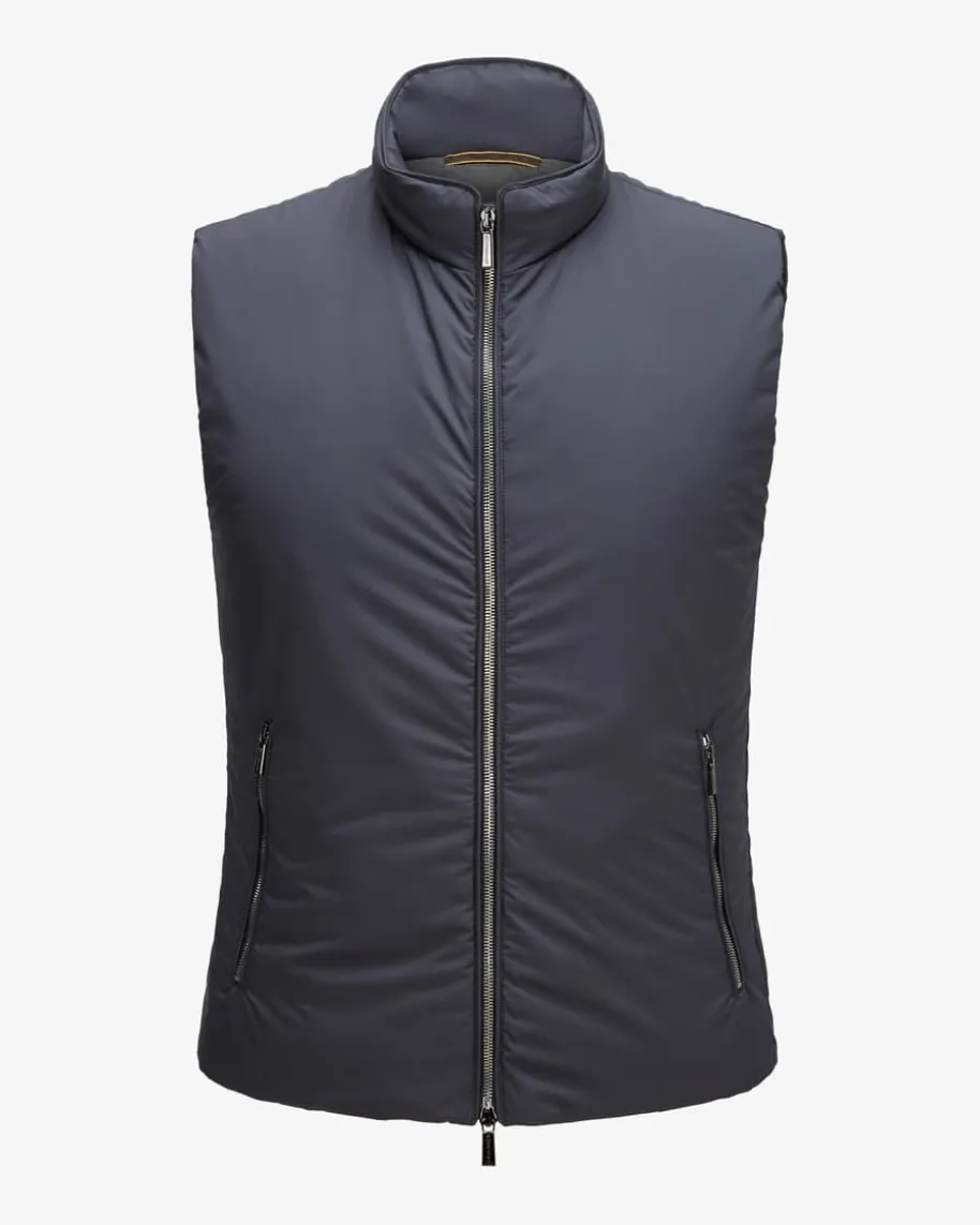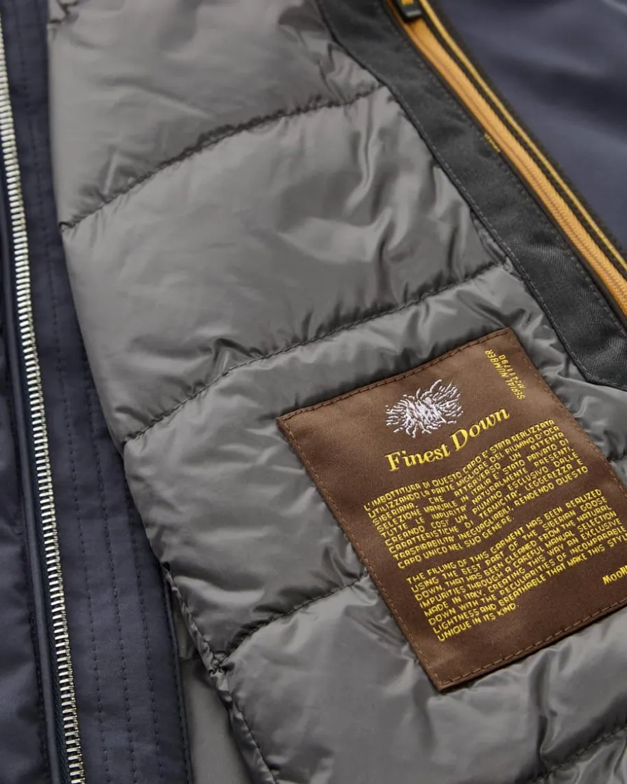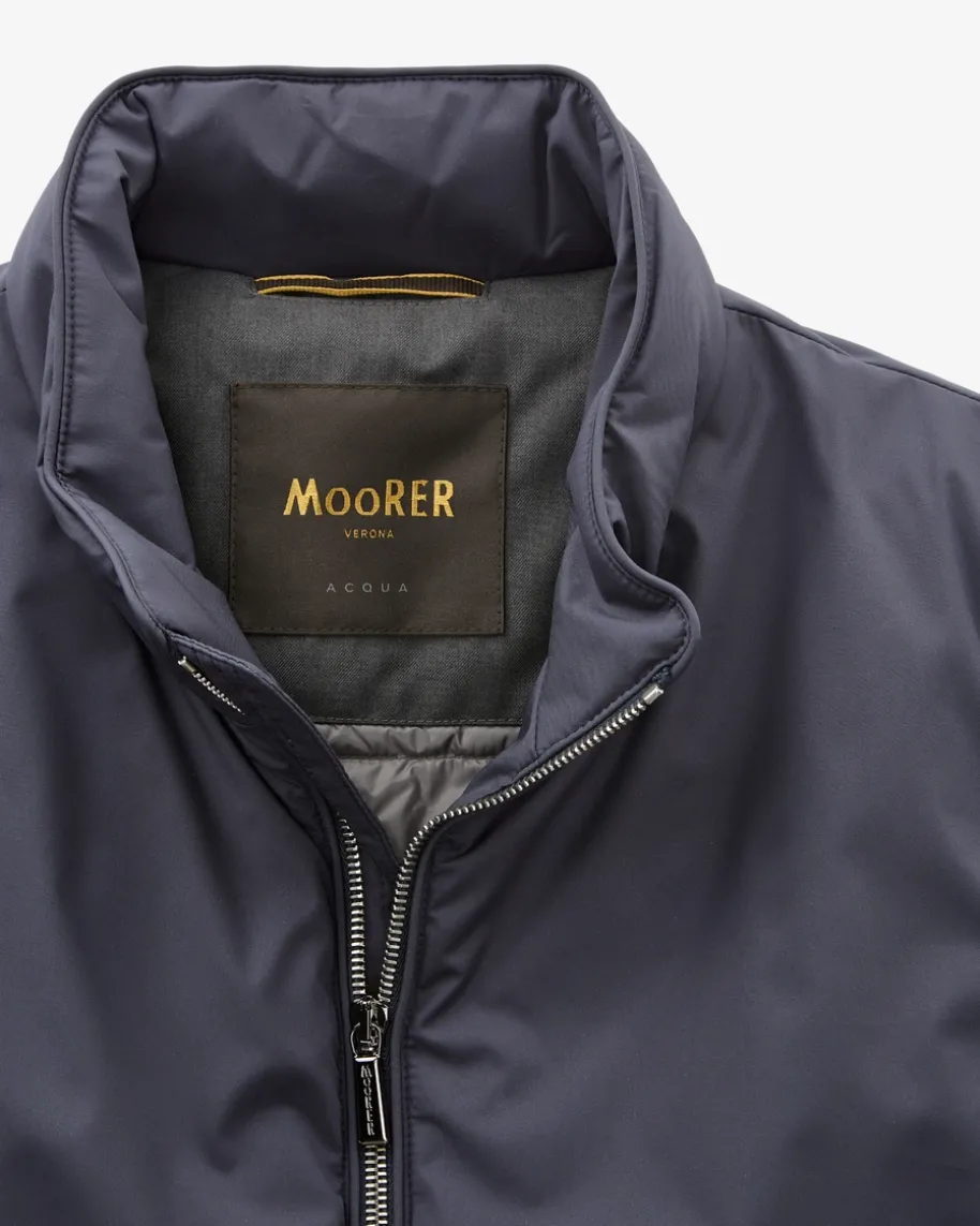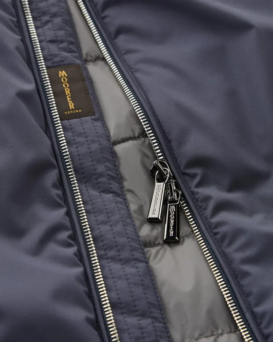 Uros Daunenweste für Herren von Moorer in Navy. Unerreichte Funktionalität, edleMaterialien und ein Mix aus Eleganz und raffinierten Details stecken hinter demLabel Moorer. Dieses Modell garantiert durch seine hochwertige Daunenfüllungoptimale Wärmeisolierung, während das cleane Design einen vielseitigen Begleiterfür die Übergangszeiten kreiert.