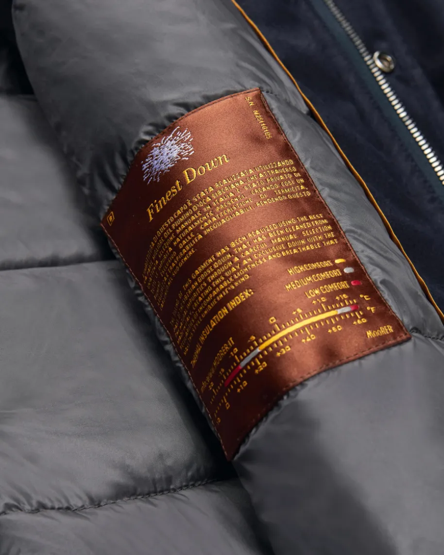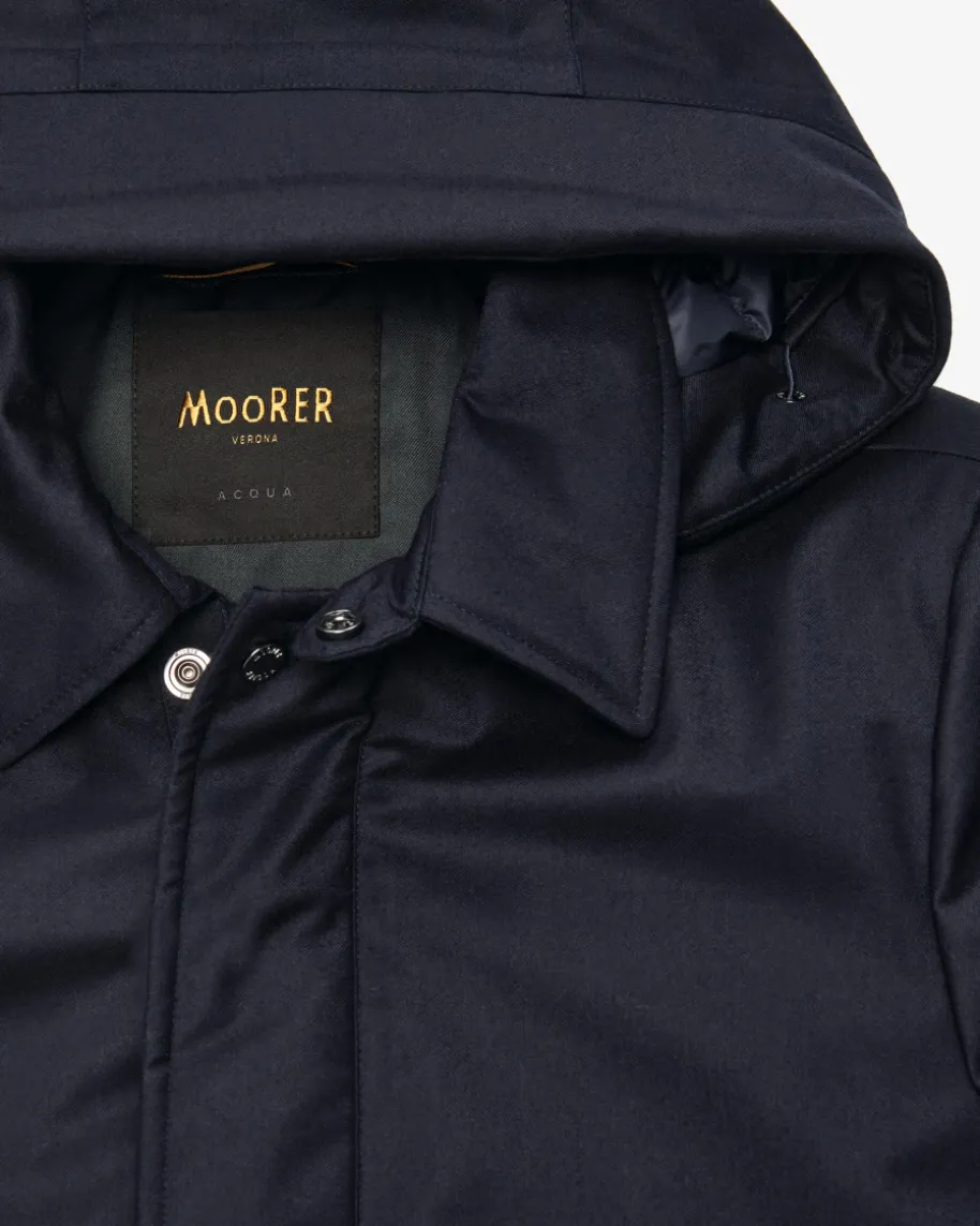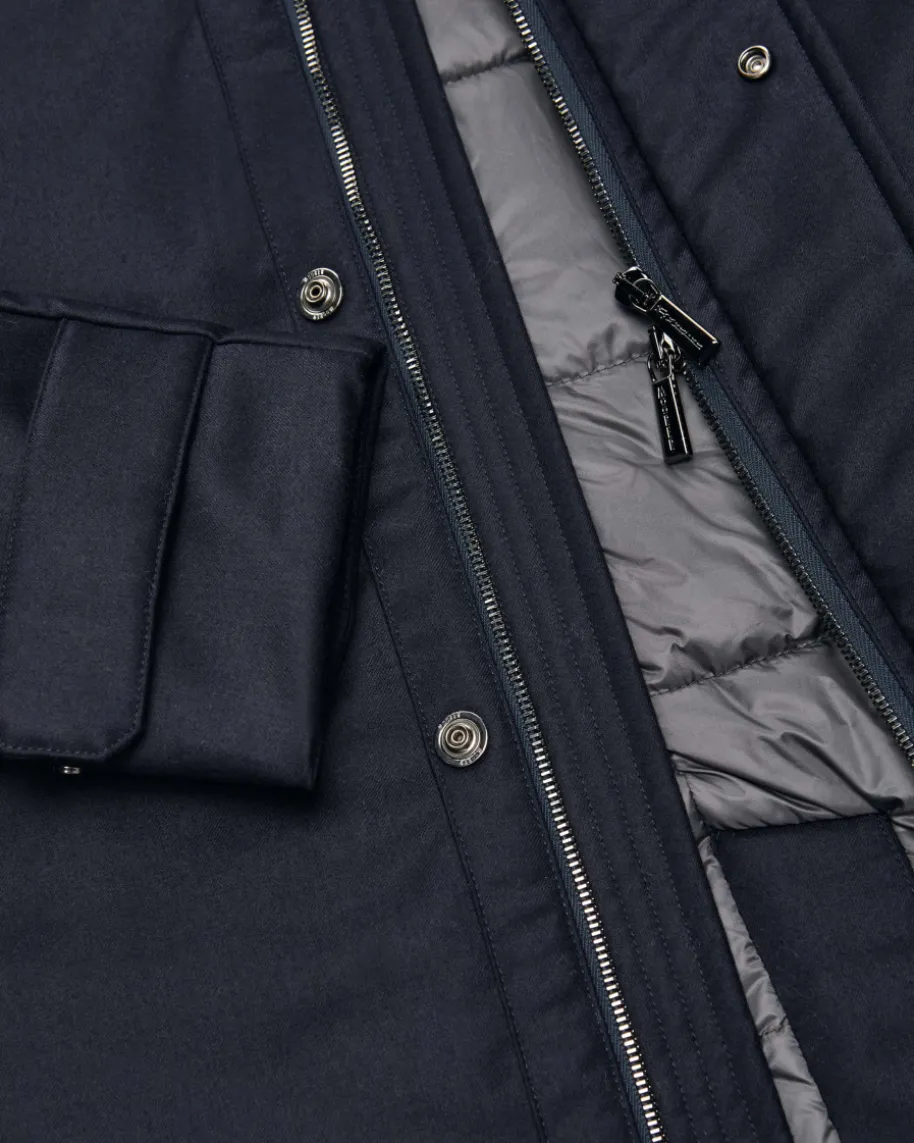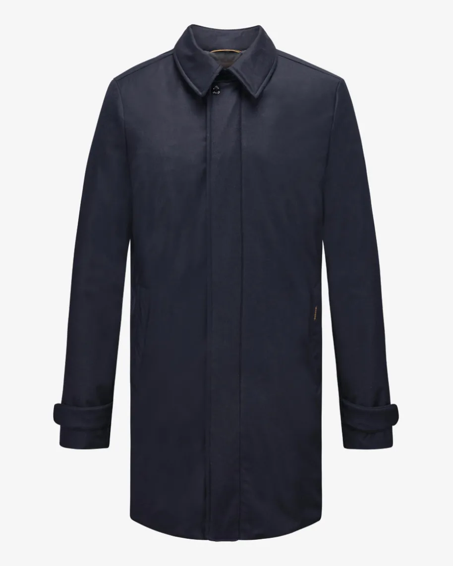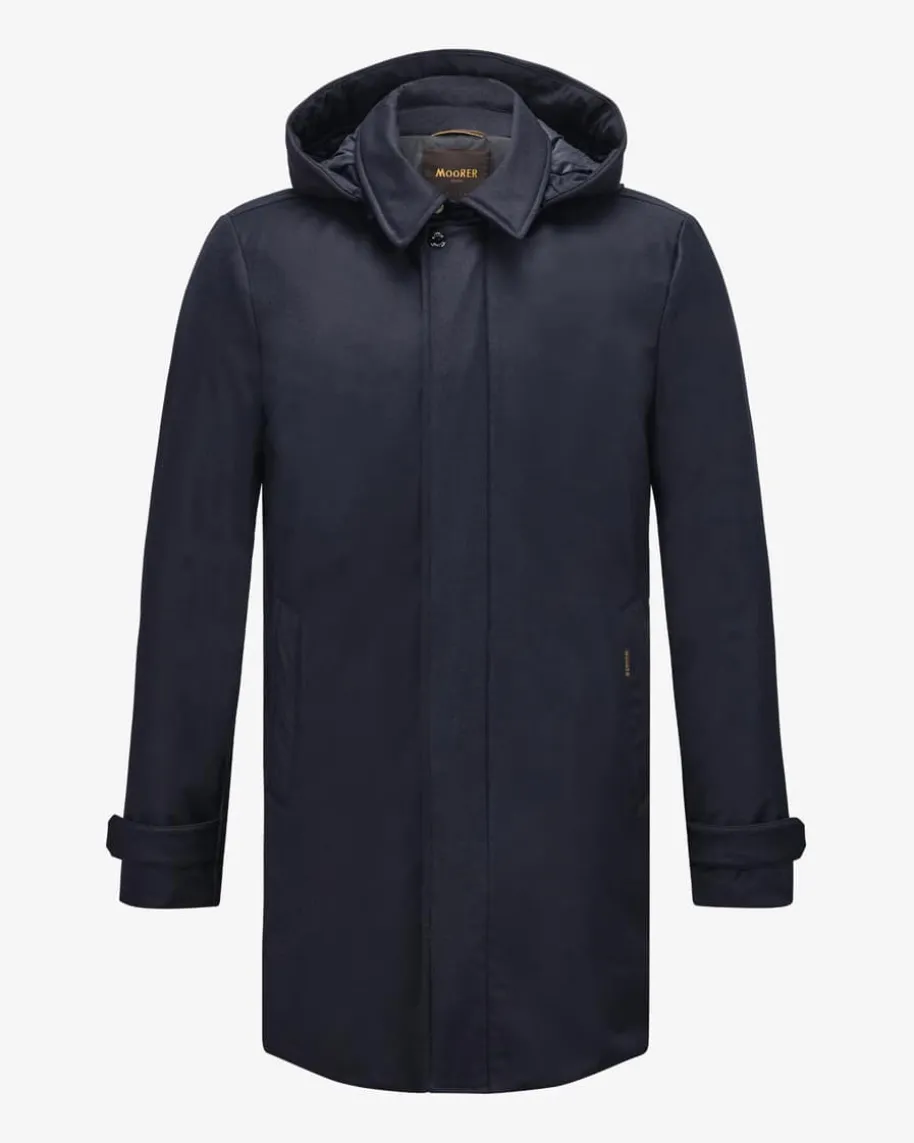 Vido Daunen-Wollmantel für Herren von Moorer in Marine. Made in Italy – Das imNorden Italiens ansässige Label steht für hochwertige Jacken, gefertigt ausfeinsten Materialien und jedes Design steht für den klassischen Mode-CharmeItaliens. Auch dieses Modell vereint maskulinen Charme mit funktionalenEigenschaften. Während der Woll-Cashmere-Mix mit wasserabweisenden Eigenschaftenfür ein edles Finish sorgt, bietet die hochwertige Daunen-Feder-Füllungoptimalen Schutz vor Kälte.