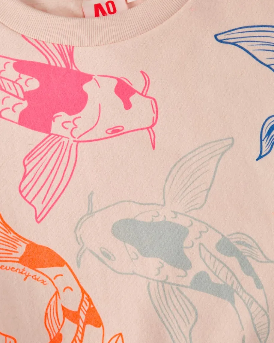 Violeta Sweatshirt für Mädchen von AO76 in Natur und Bunt. Das legere Modellbegeistert mit hochwertigem Baumwoll-Sweat und weicher Innenseite, während derfarbenfrohe Koifisch-Print den modernen Style gekonnt abrundet.